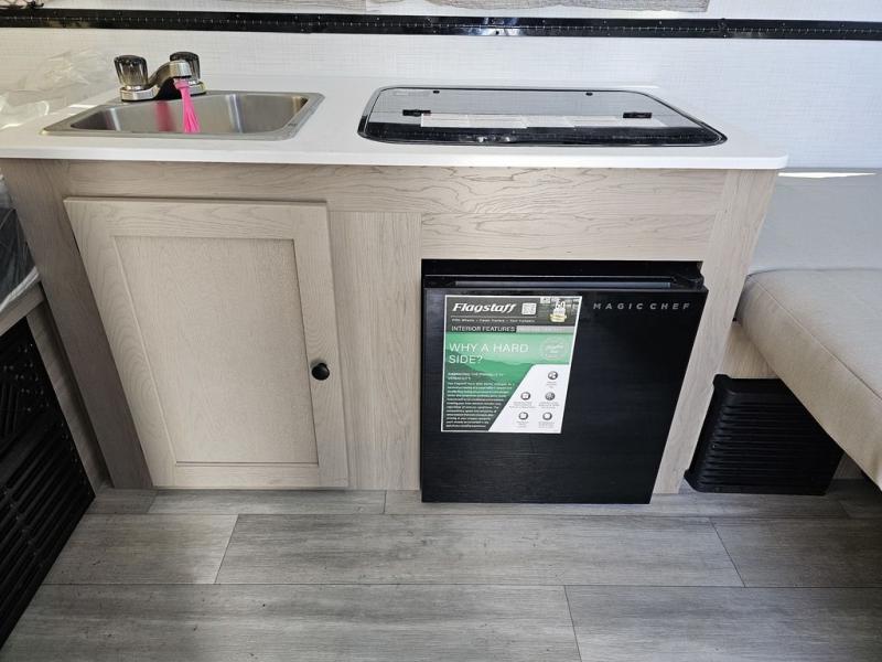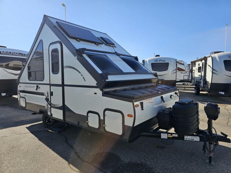 With any Flagstaff Hard Side A-frame camper by Forest River, you will enjoy the hassle-free towing of a tent camper and the exterior of a travel trailer. Like with all Forest River products, you will appreciate the durable construction, allowing you to make camping memories for years to come. There are comfortable seating and sleeping spaces, kitchen amenities to whip up your best meals, plus plenty of storage for your personal belongings, camp gear, and more!
