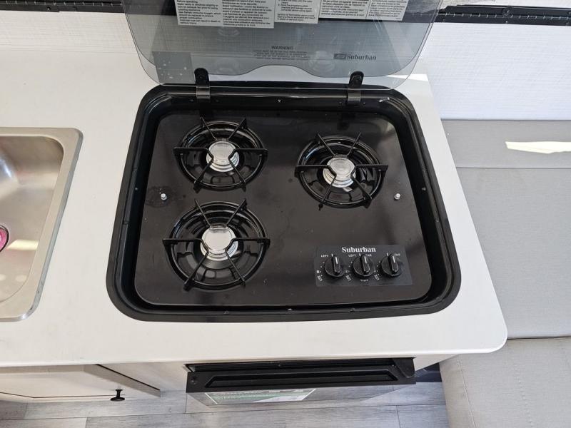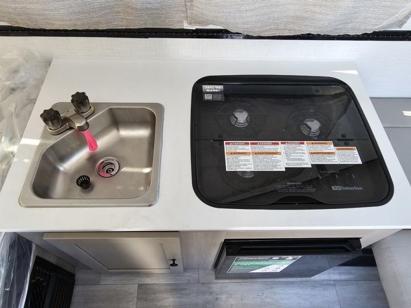 What a treat it will be to spend a weekend in this Flagstaff Hard Side A-frame! You will be able to create some more interior living space by repositioning the flip-up bed after you wake up, and the booth dinette can also maneuver out of a bed and back into a dining space easily. There is also a three burner range that can be used to fry up a hearty batch of pancakes without even starting a fire.