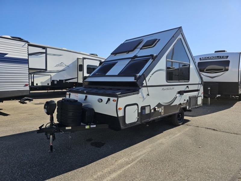 With any Flagstaff Hard Side A-frame camper by Forest River, you will enjoy the hassle-free towing of a tent camper and the exterior of a travel trailer. Like with all Forest River products, you will appreciate the durable construction, allowing you to make camping memories for years to come. There are comfortable seating and sleeping spaces, kitchen amenities to whip up your best meals, plus plenty of storage for your personal belongings, camp gear, and more!