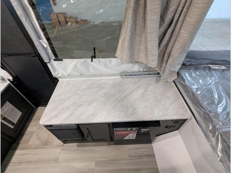 You'll be pleasantly surprised by the amount of comfort in these Flagstaff MAC Series folding pop-up campers by Forest River. Each one is built with a fiberglass laminated roof for added durability and a power roof lift for easy set up. There is also a clay exterior with an alloy band, solar panel prep on the frame, and four stabilizer jacks with sand pads to keep your camper secure. The interior features wood plank flooring, heated mattresses on the bunk ends, USB charging ports, and stylish Andover Sable wood.