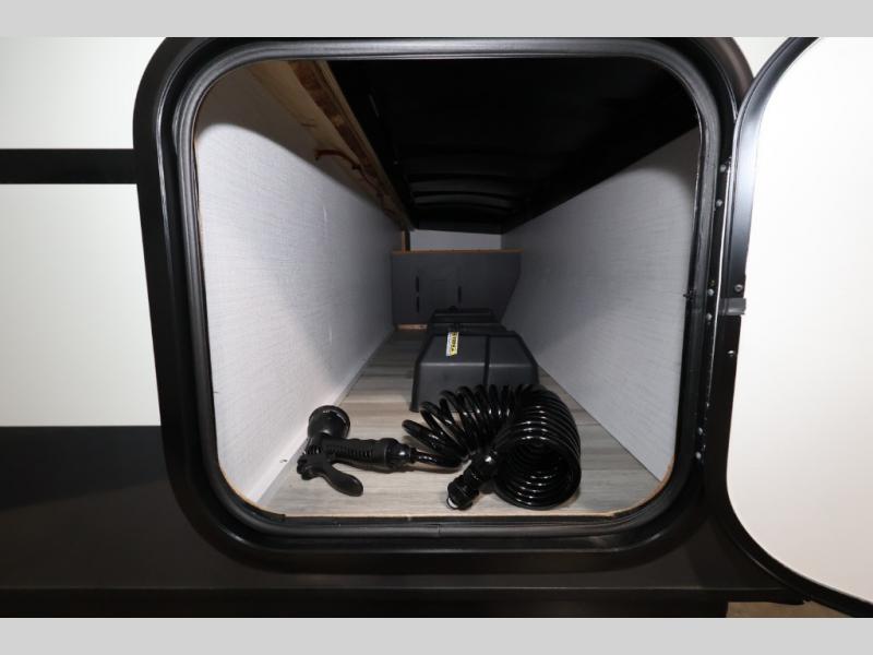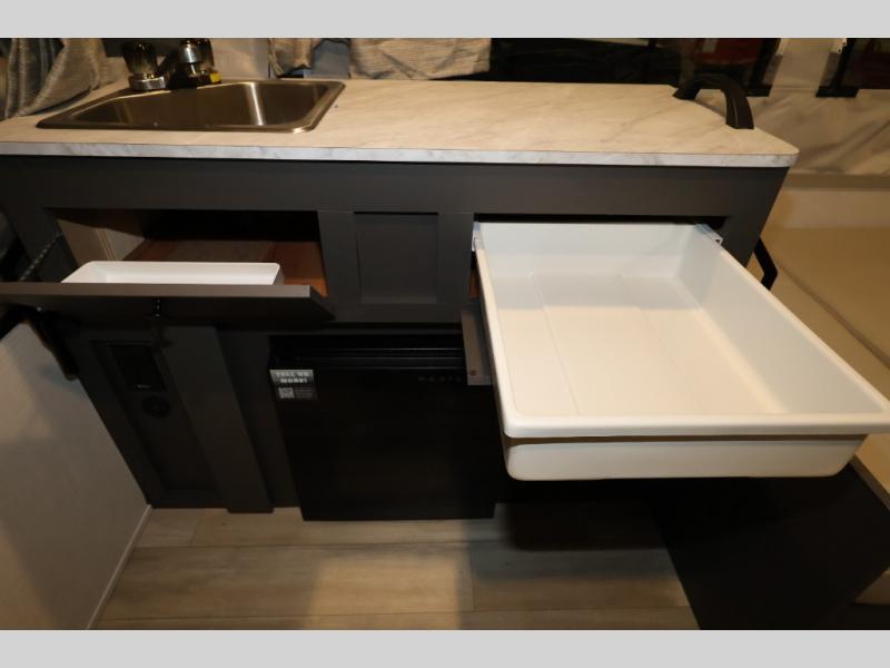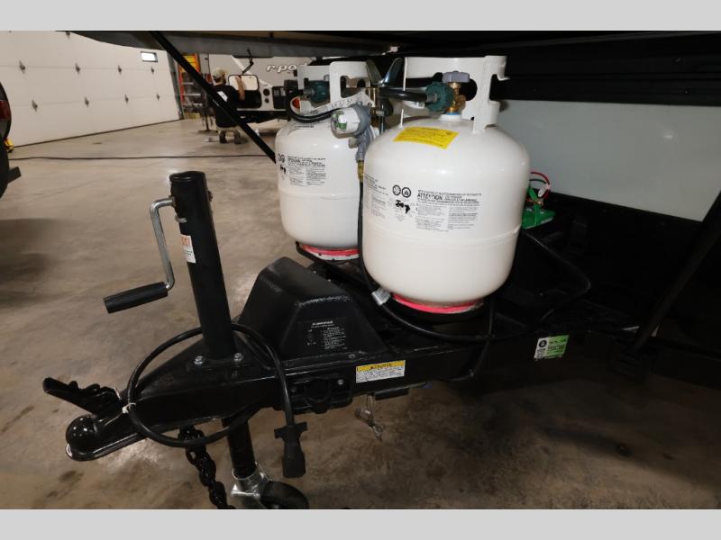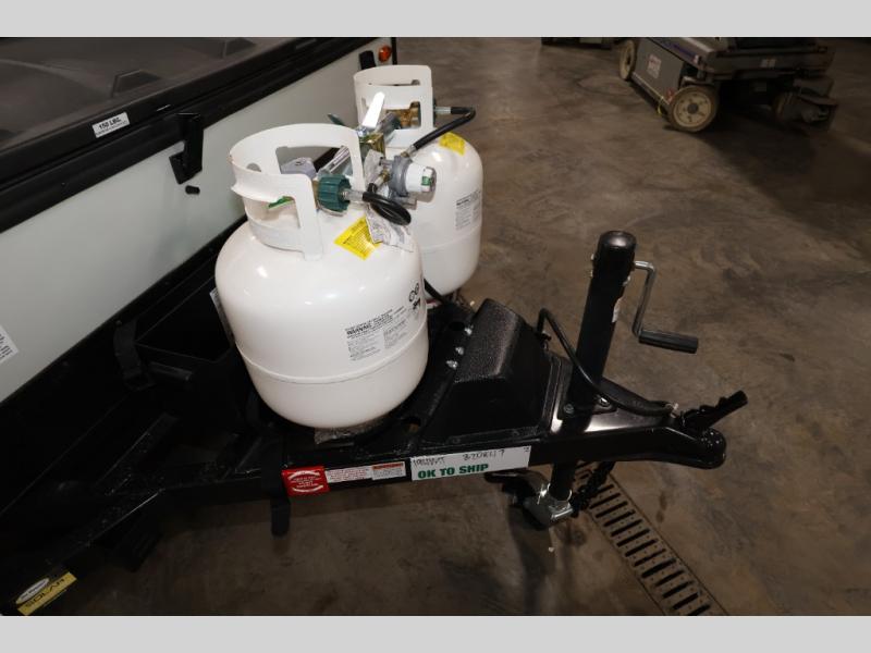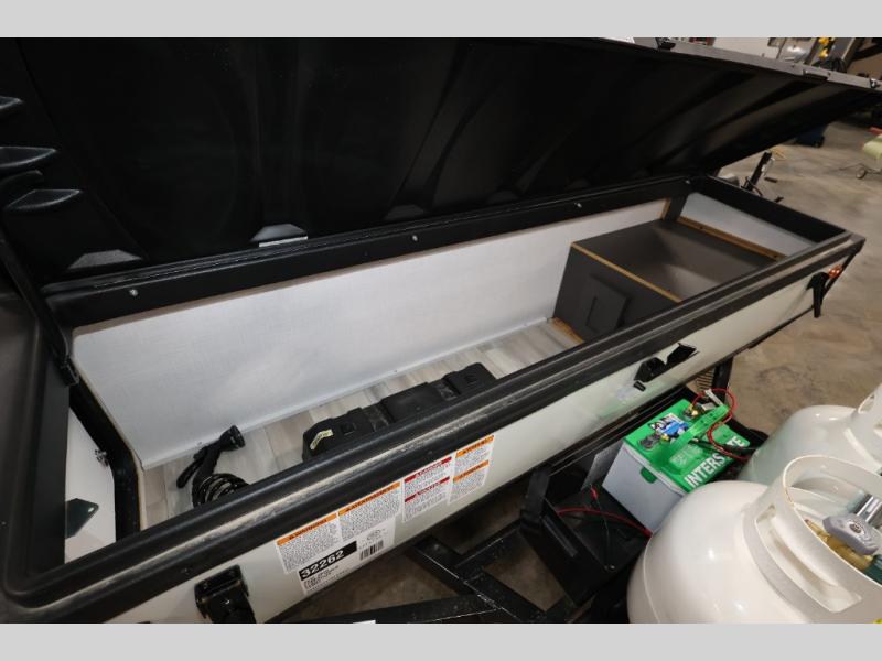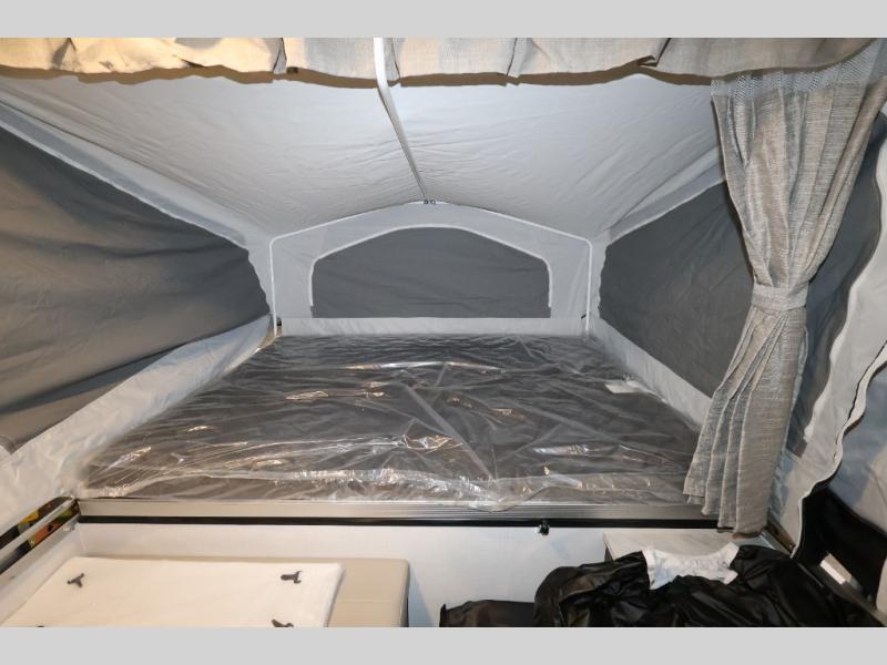 Enjoy time at the campground in this camper that can sleep five to six each night. There is a front 60" x 80" tent end bed, a 48" x 80" rear tent end bed, plus a booth dinette and a gaucho bed. The exterior griddle will let you make meals each day, and the 12V refrigerator with a 100W roof solar panel will keep your food fresh. This unit also includes storage with a lid your belongings.