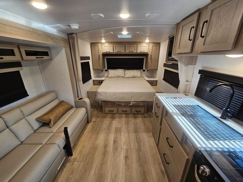 With any Flagstaff Micro Lite travel trailer by Forest River you will enjoy lightweight towing, durable construction, and added interior comforts to make each trip memorable! Each model features a torsion axle, Rubber-Ryde suspension, nitrogen filled, Goodyear Endurance tires, and easy lube axles with Nev-R-Adjust brakes for smooth towing from home to campground. The 6-sided aluminum framed construction provides a strong foundation so you can enjoy your RV for years to come, plus electronically controlled heated holding tanks and an enclosed underbelly will let you camp all year long. Head inside to find hybrid woven flooring in the slide outs, Sedona wood cabinetry, solid surface kitchen countertops, and many more amenities. These travel trailers also include exterior conveniences for hassle-free camping, like the power tongue jack, magnetic compartment door catches, Keyed Alike locks, and rear ladder to name a few!