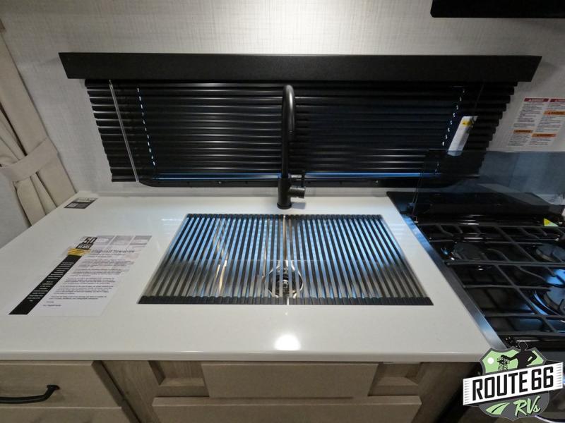 With any Flagstaff Micro Lite travel trailer by Forest River you will enjoy lightweight towing, durable construction, and added interior comforts to make each trip memorable! Each model features a torsion axle, Rubber-Ryde suspension, nitrogen filled, Goodyear Endurance tires, and easy lube axles with Nev-R-Adjust brakes for smooth towing from home to campground. The 6-sided aluminum framed construction provides a strong foundation so you can enjoy your RV for years to come, plus electronically controlled heated holding tanks and an enclosed underbelly will let you camp all year long. Head inside to find hybrid woven flooring in the slide outs, Sedona wood cabinetry, solid surface kitchen countertops, and many more amenities. These travel trailers also include exterior conveniences for hassle-free camping, like the power tongue jack, magnetic compartment door catches, Keyed Alike locks, and rear ladder to name a few!