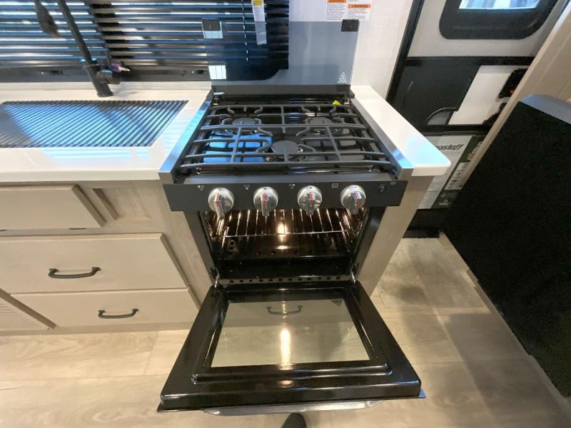 For the couple who is ready to get out and enjoy nature, this Flagstaff Micro Lite travel trailer is ideal for you! This unit has all of the basic amenities, like a rear corner bath with a radius shower, and a front RV queen bed that makes for a comfy night's rest. There is also flip-up storage under the bed to keep luggage, board games, and more! The slide out with the 72" sofa provides extra interior space so that you won't feel cramped. You'll also be able to enjoy your meals here with a table in front of the sofa. After swimming all day working up your appetite, come back to this unit and cook a meal on the three-burner cooktop! This travel trailer features a pass-through storage for your larger camping items, plus an exterior storage to hold the kids' outdoor games and an exterior griddle for breakfast outdoors.