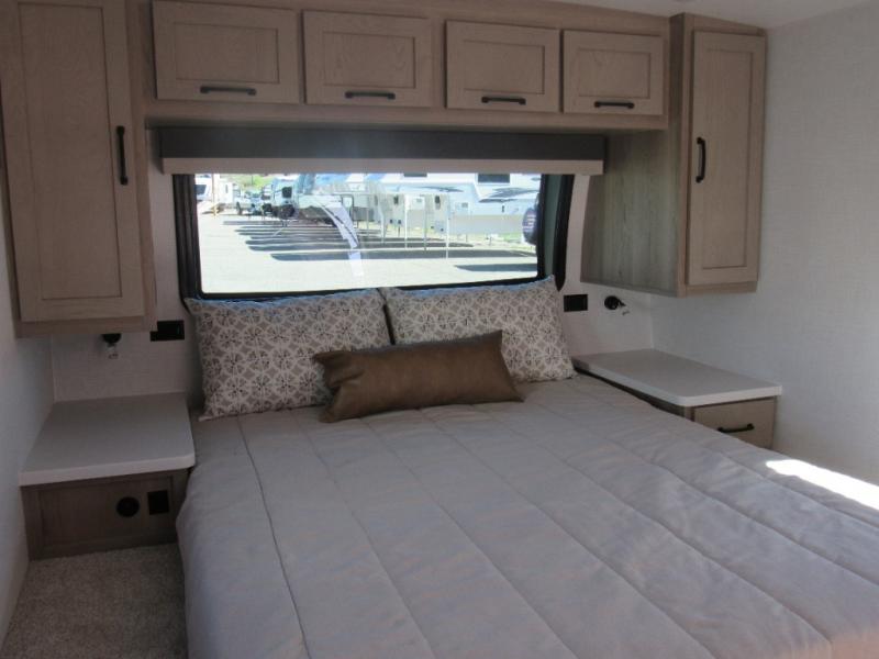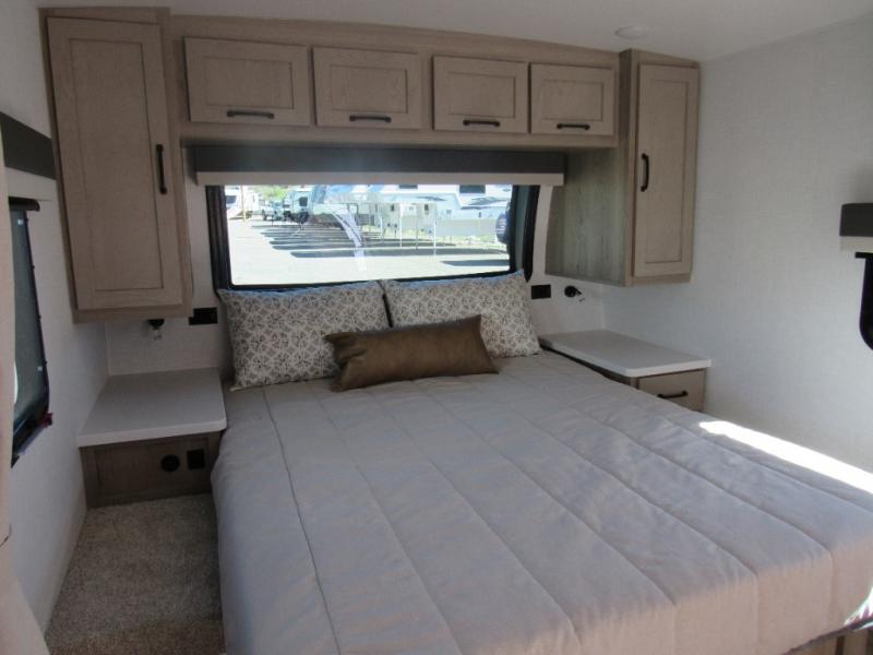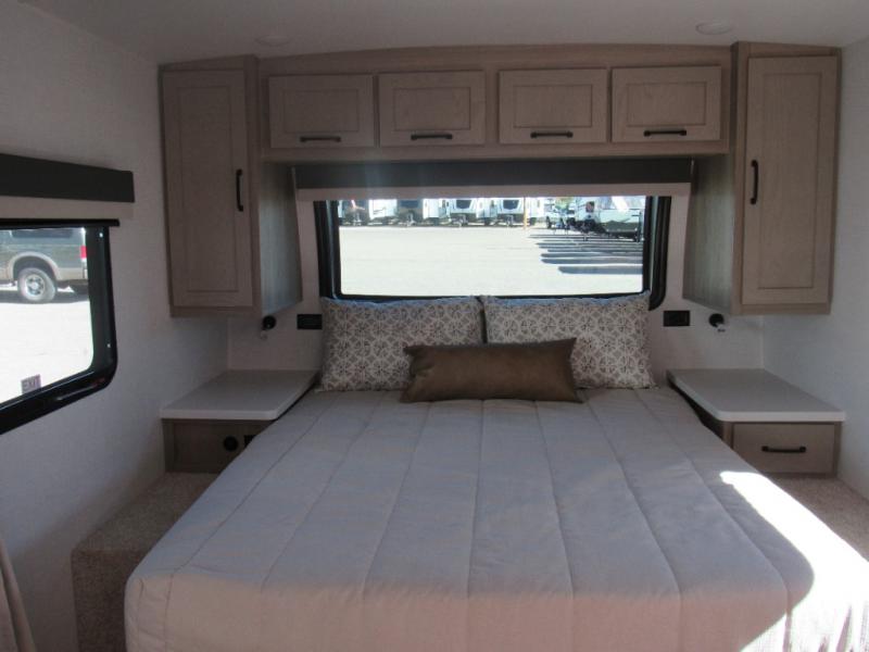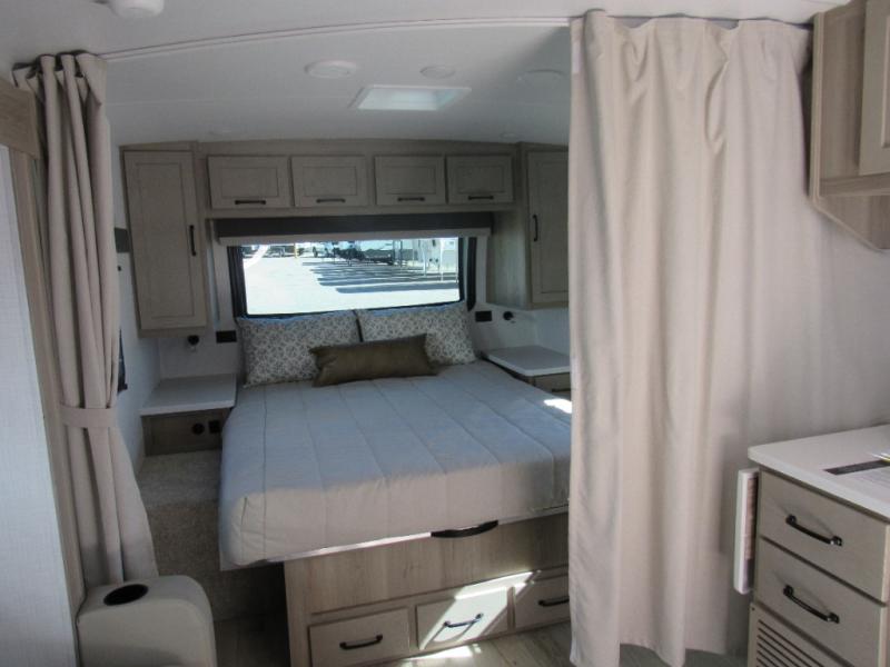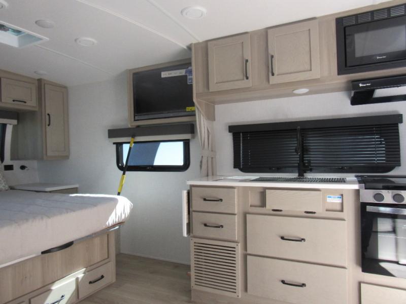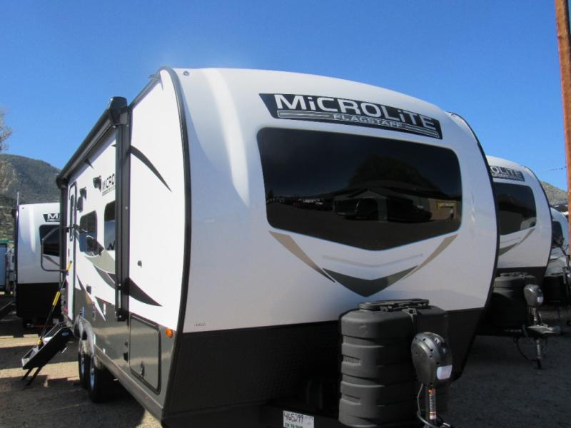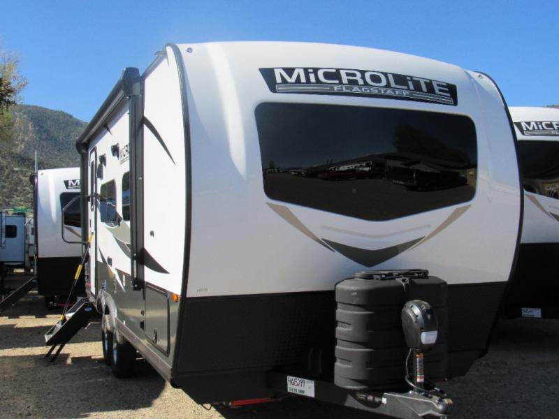 With any Flagstaff Micro Lite travel trailer by Forest River you will enjoy lightweight towing, durable construction, and added interior comforts to make each trip memorable! Each model features a torsion axle, Rubber-Ryde suspension, nitrogen filled, Goodyear Endurance tires, and easy lube axles with Nev-R-Adjust brakes for smooth towing from home to campground. The 6-sided aluminum framed construction provides a strong foundation so you can enjoy your RV for years to come, plus electronically controlled heated holding tanks and an enclosed underbelly will let you camp all year long. Head inside to find hybrid woven flooring in the slide outs, Sedona wood cabinetry, solid surface kitchen countertops, and many more amenities. These travel trailers also include exterior conveniences for hassle-free camping, like the power tongue jack, magnetic compartment door catches, Keyed Alike locks, and rear ladder to name a few!