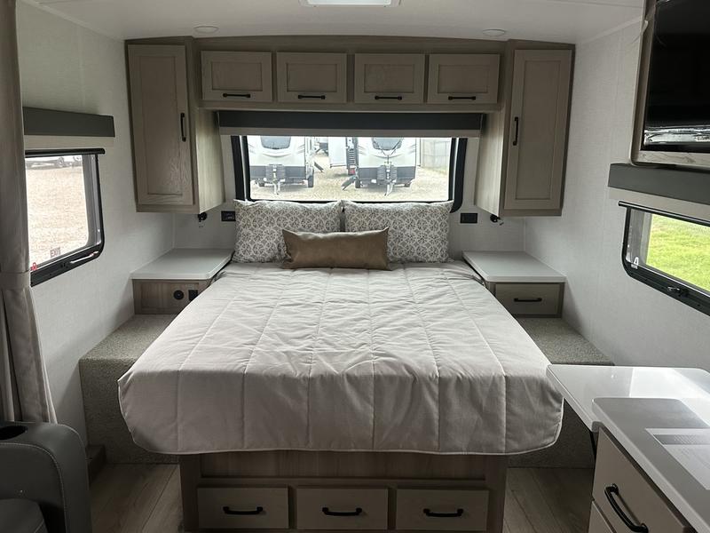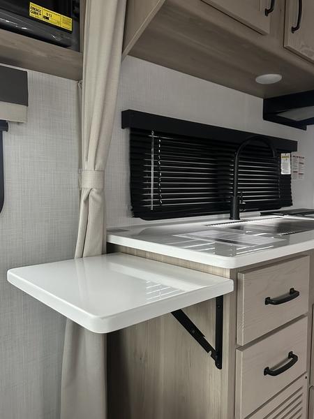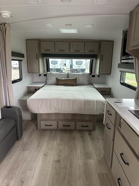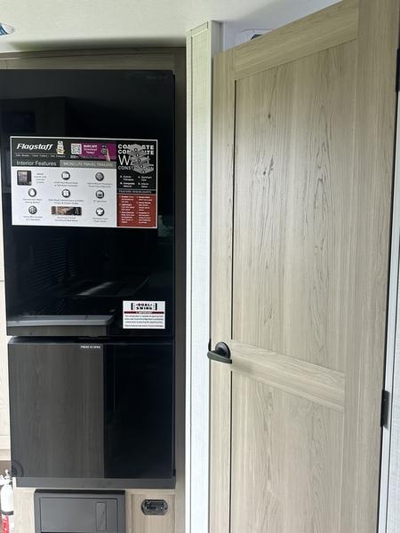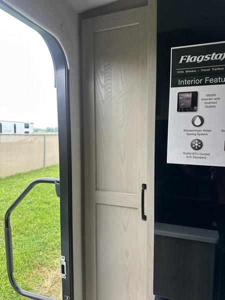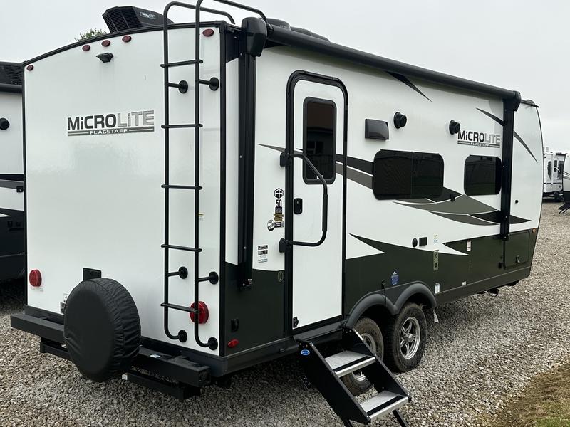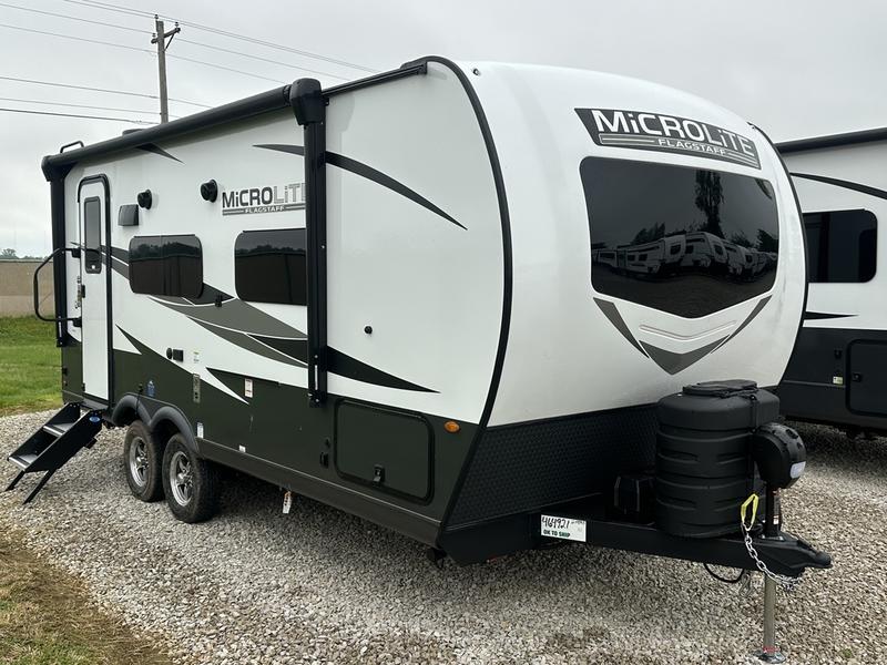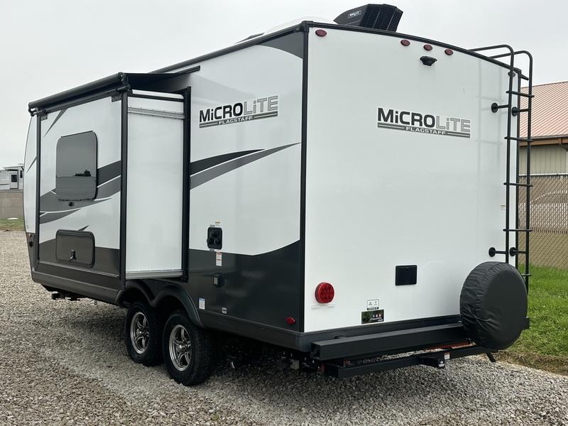 With any Flagstaff Micro Lite travel trailer by Forest River you will enjoy lightweight towing, durable construction, and added interior comforts to make each trip memorable! Each model features a torsion axle, Rubber-Ryde suspension, nitrogen filled, Goodyear Endurance tires, and easy lube axles with Nev-R-Adjust brakes for smooth towing from home to campground. The 6-sided aluminum framed construction provides a strong foundation so you can enjoy your RV for years to come, plus electronically controlled heated holding tanks and an enclosed underbelly will let you camp all year long. Head inside to find hybrid woven flooring in the slide outs, Sedona wood cabinetry, solid surface kitchen countertops, and many more amenities. These travel trailers also include exterior conveniences for hassle-free camping, like the power tongue jack, magnetic compartment door catches, Keyed Alike locks, and rear ladder to name a few!