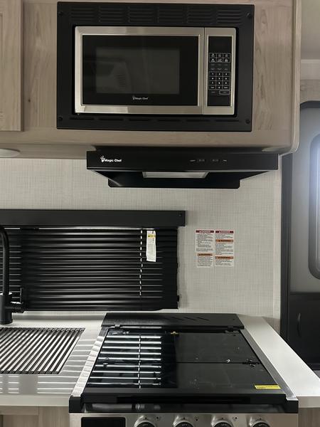 For the couple who is ready to get out and enjoy nature, this Flagstaff Micro Lite travel trailer is ideal for you! This unit has all of the basic amenities, like a rear corner bath with a radius shower, and a front RV queen bed that makes for a comfy night's rest. There is also flip-up storage under the bed to keep luggage, board games, and more! The slide out with the 72" sofa provides extra interior space so that you won't feel cramped. You'll also be able to enjoy your meals here with a table in front of the sofa. After swimming all day working up your appetite, come back to this unit and cook a meal on the three-burner cooktop! This travel trailer features a pass-through storage for your larger camping items, plus an exterior storage to hold the kids' outdoor games and an exterior griddle for breakfast outdoors.