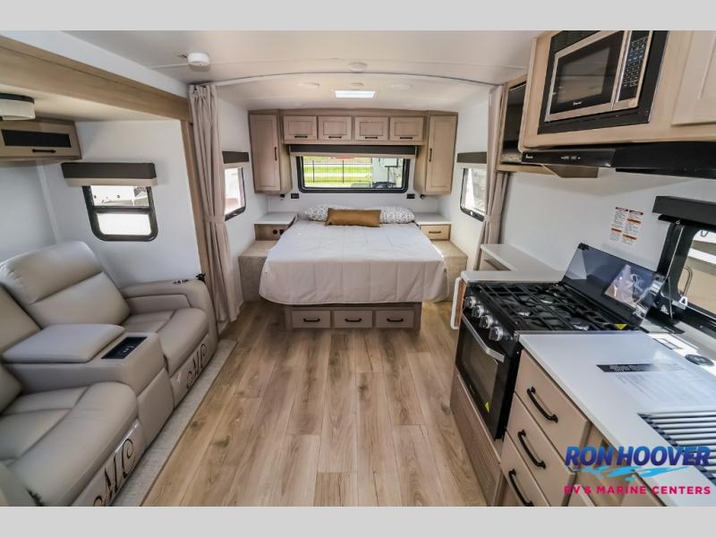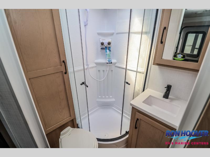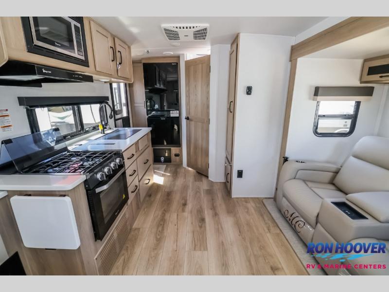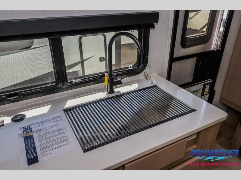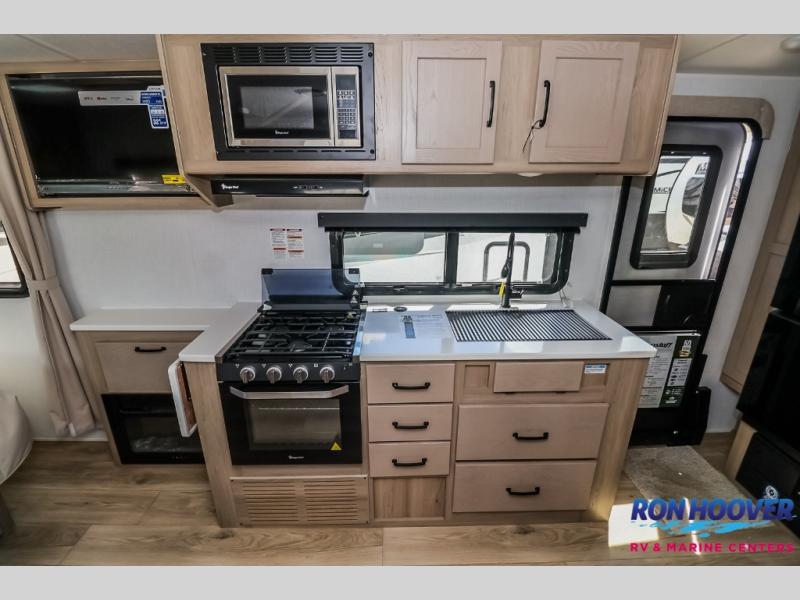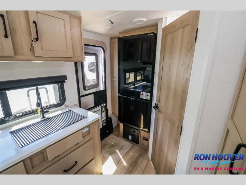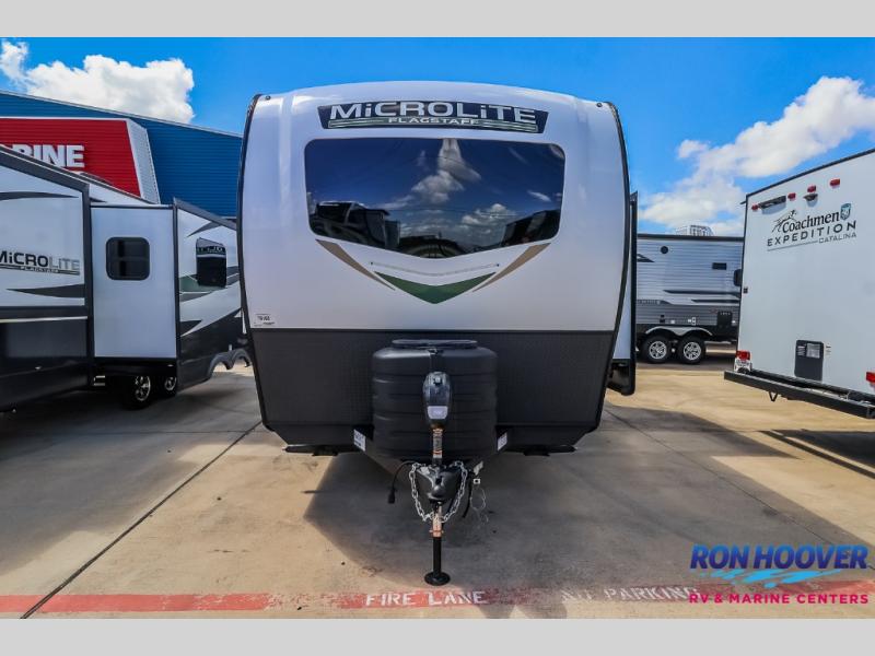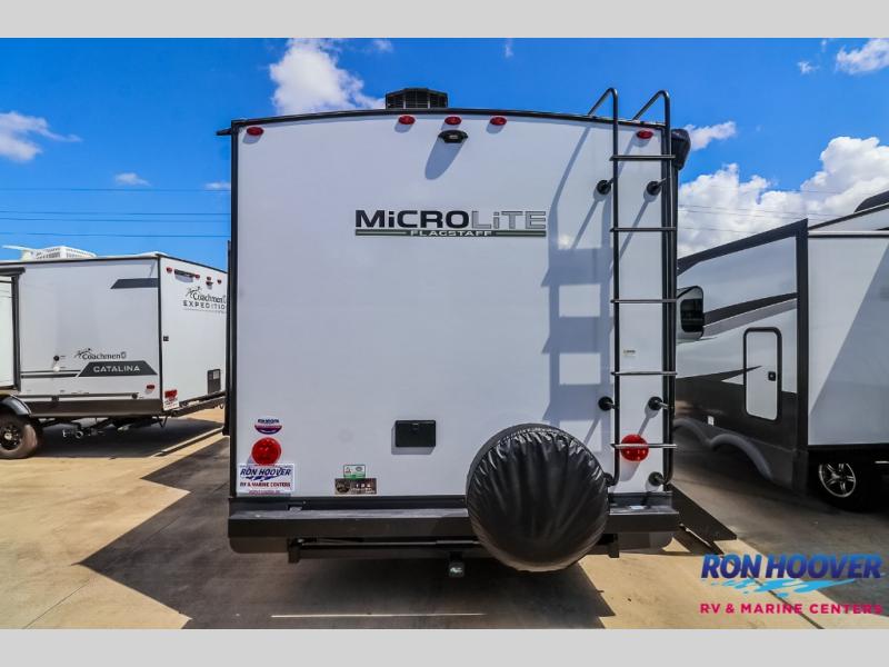 With any Flagstaff Micro Lite travel trailer by Forest River you will enjoy lightweight towing, durable construction, and added interior comforts to make each trip memorable! Each model features a torsion axle, Rubber-Ryde suspension, nitrogen filled, Goodyear Endurance tires, and easy lube axles with Nev-R-Adjust brakes for smooth towing from home to campground. The 6-sided aluminum framed construction provides a strong foundation so you can enjoy your RV for years to come, plus electronically controlled heated holding tanks and an enclosed underbelly will let you camp all year long. Head inside to find hybrid woven flooring in the slide outs, Sedona wood cabinetry, solid surface kitchen countertops, and many more amenities. These travel trailers also include exterior conveniences for hassle-free camping, like the power tongue jack, magnetic compartment door catches, Keyed Alike locks, and rear ladder to name a few!