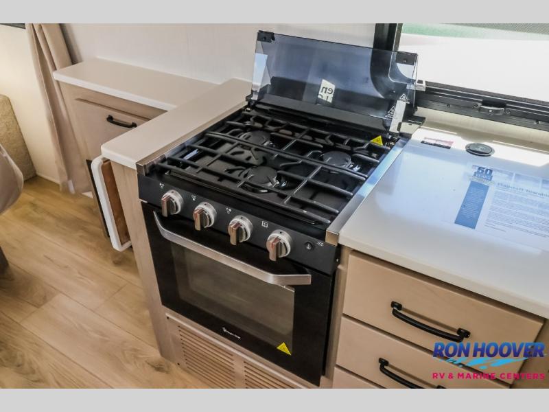 Make your vacations everything you've always wanted them to be with this Flagstaff Micro Lite travel trailer! A full bathroom with a radius shower, linen closet, and skylight will allow you to stay clean without having to find a public rest stop. There is also a three-burner range, a gas oven, and a 12 volt refrigerator will allow you to eat more than just fast food while you are away from home. You can even sleep just as comfortably as you do at home because the queen-size bed up front will provide peaceful dreams each and every night, and more features that will allow you to go off-grid when the adventure calls for it!