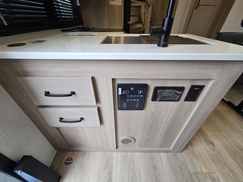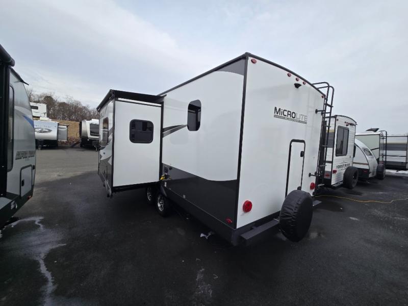 With any Flagstaff Micro Lite travel trailer by Forest River you will enjoy lightweight towing, durable construction, and added interior comforts to make each trip memorable! Each model features a torsion axle, Rubber-Ryde suspension, nitrogen filled, Goodyear Endurance tires, and easy lube axles with Nev-R-Adjust brakes for smooth towing from home to campground. The 6-sided aluminum framed construction provides a strong foundation so you can enjoy your RV for years to come, plus electronically controlled heated holding tanks and an enclosed underbelly will let you camp all year long. Head inside to find hybrid woven flooring in the slide outs, Sedona wood cabinetry, solid surface kitchen countertops, and many more amenities. These travel trailers also include exterior conveniences for hassle-free camping, like the power tongue jack, magnetic compartment door catches, Keyed Alike locks, and rear ladder to name a few!