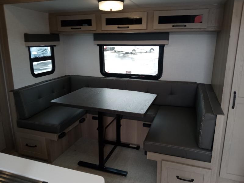 Load up your family of eight and head out to the campground of your choice with this Flagstaff Micro Lite travel trailer in tow! The kids will enjoy the double-size bunks so that they can invite their friends or cousins. This unit features a single slide with a U-shaped dinette so you can gather around for family game night. And the dinette can be replaced by an optional theater seat or optional hide-a-bed sofa, depending on your needs! Relax on the sofa and visit with friends before converting the sofa into a Murphy bed. Everyone will appreciate having a full bathroom with a shower skylight above the shower for some extra sunlight while getting ready. And don't over look the exterior with its outside kitchen, 18' power awning, pass-through storage, and more!