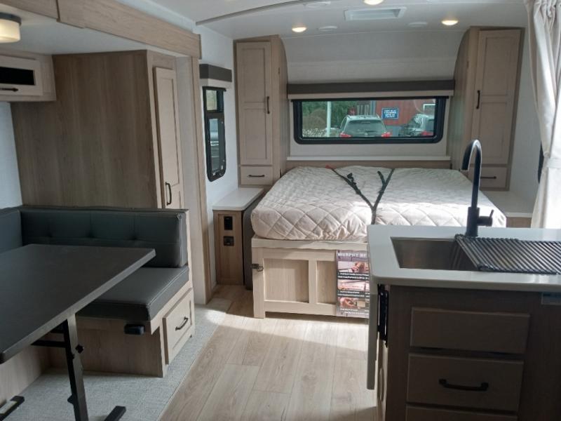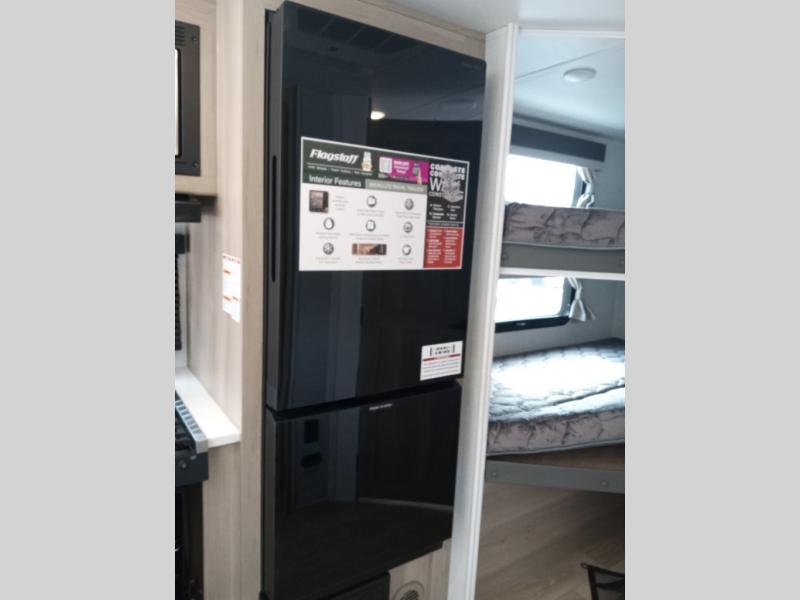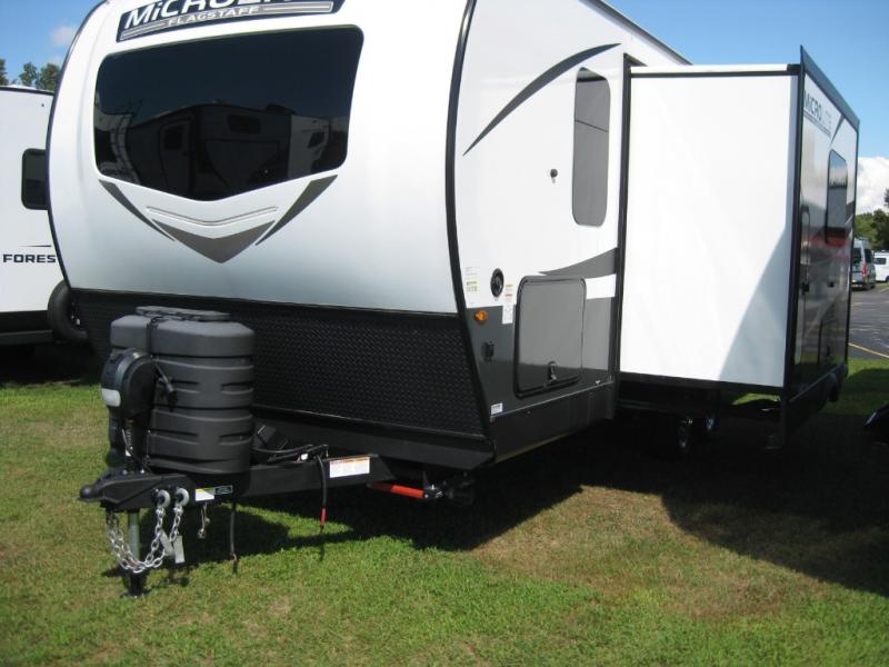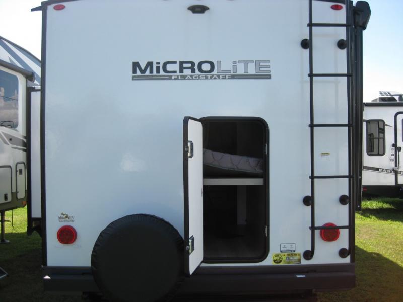With any Flagstaff Micro Lite travel trailer by Forest River you will enjoy lightweight towing, durable construction, and added interior comforts to make each trip memorable! Each model features a torsion axle, Rubber-Ryde suspension, nitrogen filled, Goodyear Endurance tires, and easy lube axles with Nev-R-Adjust brakes for smooth towing from home to campground. The 6-sided aluminum framed construction provides a strong foundation so you can enjoy your RV for years to come, plus electronically controlled heated holding tanks and an enclosed underbelly will let you camp all year long. Head inside to find hybrid woven flooring in the slide outs, Sedona wood cabinetry, solid surface kitchen countertops, and many more amenities. These travel trailers also include exterior conveniences for hassle-free camping, like the power tongue jack, magnetic compartment door catches, Keyed Alike locks, and rear ladder to name a few!