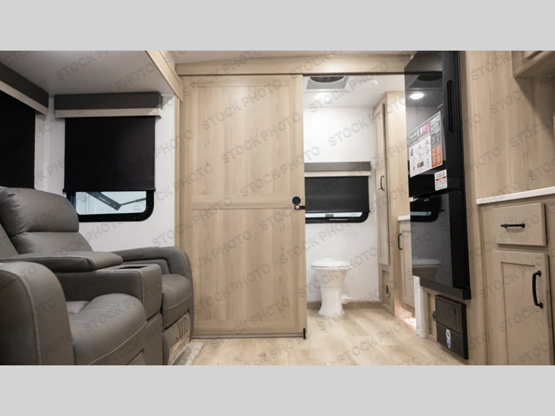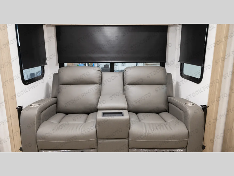 If you like to camp with your honey or a friend, this travel trailer will be perfect for you! You can sleep two people each night on the RV queen bed in the front private bedroom. You'll also find a wardrobe slide in the bedroom for more space, plus an additional wardrobe and an optional TV if you enjoy movies in bed. The theater seat with tables will provide a place to relax and dine together, and if you do need extra sleeping space, just choose the optional hide-a-bed sofa with a table instead of the theater seat. Delicious meals can be made on the three burner cooktop or in the 21" gas oven, and there is a 12V refrigerator for leftovers. The exterior is just as accommodating as the interior with its exterior griddle, drop-frame pass-through storage, 2" receiver hitch, and 20' power awning with LED lights.
