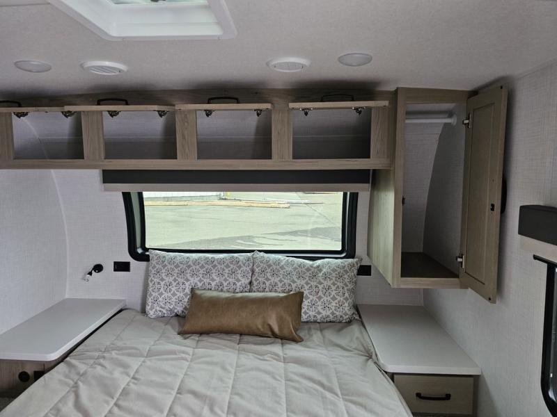 With any Flagstaff Micro Lite travel trailer by Forest River you will enjoy lightweight towing, durable construction, and added interior comforts to make each trip memorable! Each model features a torsion axle, Rubber-Ryde suspension, nitrogen filled, Goodyear Endurance tires, and easy lube axles with Nev-R-Adjust brakes for smooth towing from home to campground. The 6-sided aluminum framed construction provides a strong foundation so you can enjoy your RV for years to come, plus electronically controlled heated holding tanks and an enclosed underbelly will let you camp all year long. Head inside to find hybrid woven flooring in the slide outs, Sedona wood cabinetry, solid surface kitchen countertops, and many more amenities. These travel trailers also include exterior conveniences for hassle-free camping, like the power tongue jack, magnetic compartment door catches, Keyed Alike locks, and rear ladder to name a few!