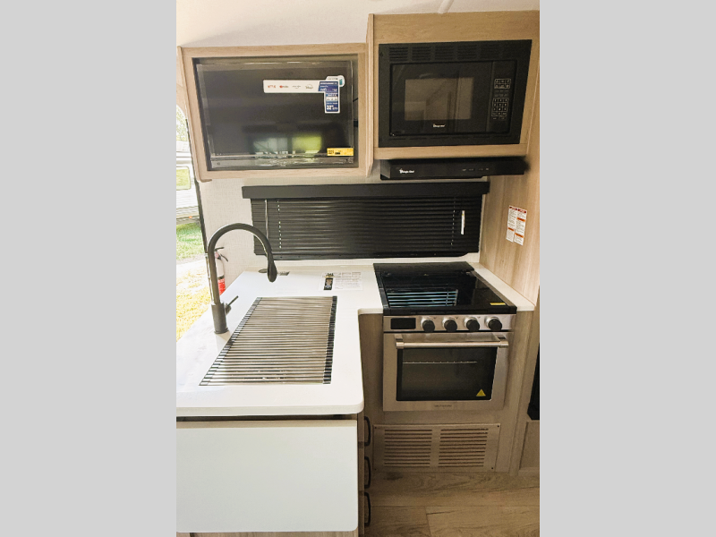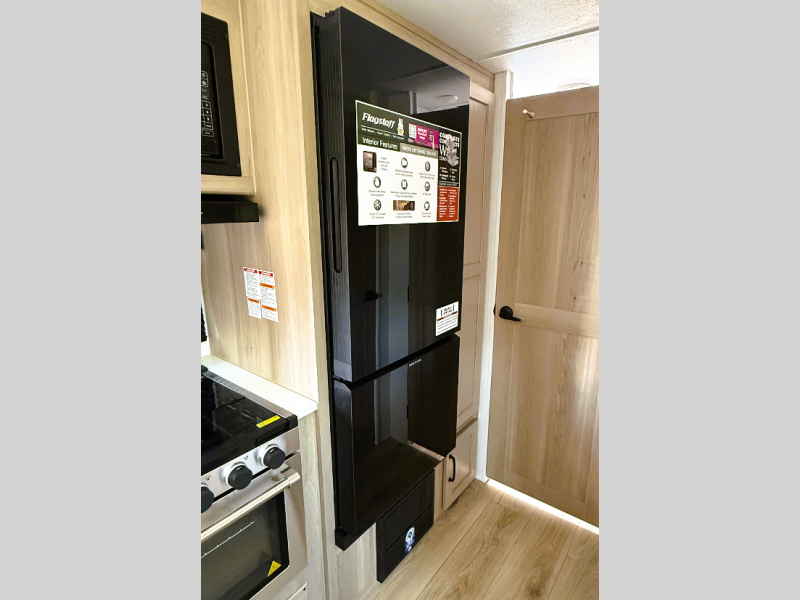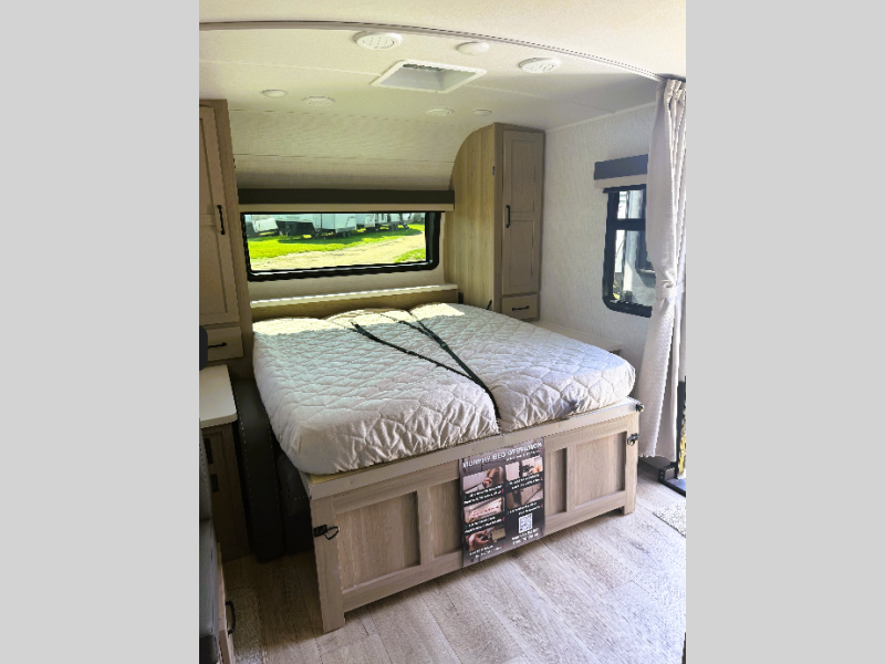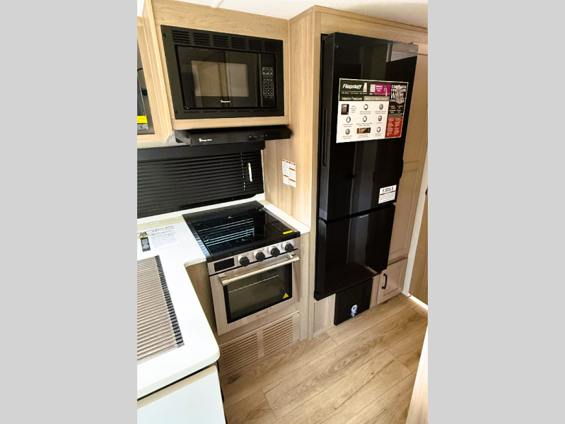 With any Flagstaff Micro Lite travel trailer by Forest River you will enjoy lightweight towing, durable construction, and added interior comforts to make each trip memorable! Each model features a torsion axle, Rubber-Ryde suspension, nitrogen filled, Goodyear Endurance tires, and easy lube axles with Nev-R-Adjust brakes for smooth towing from home to campground. The 6-sided aluminum framed construction provides a strong foundation so you can enjoy your RV for years to come, plus electronically controlled heated holding tanks and an enclosed underbelly will let you camp all year long. Head inside to find hybrid woven flooring in the slide outs, Sedona wood cabinetry, solid surface kitchen countertops, and many more amenities. These travel trailers also include exterior conveniences for hassle-free camping, like the power tongue jack, magnetic compartment door catches, Keyed Alike locks, and rear ladder to name a few!