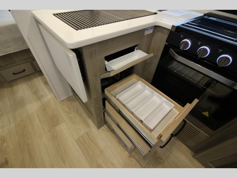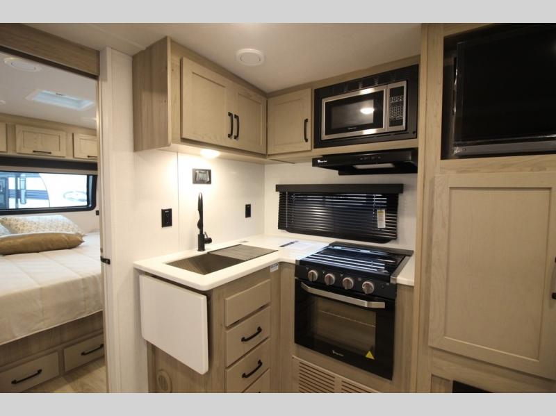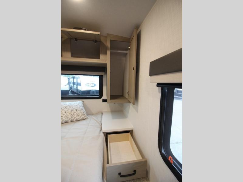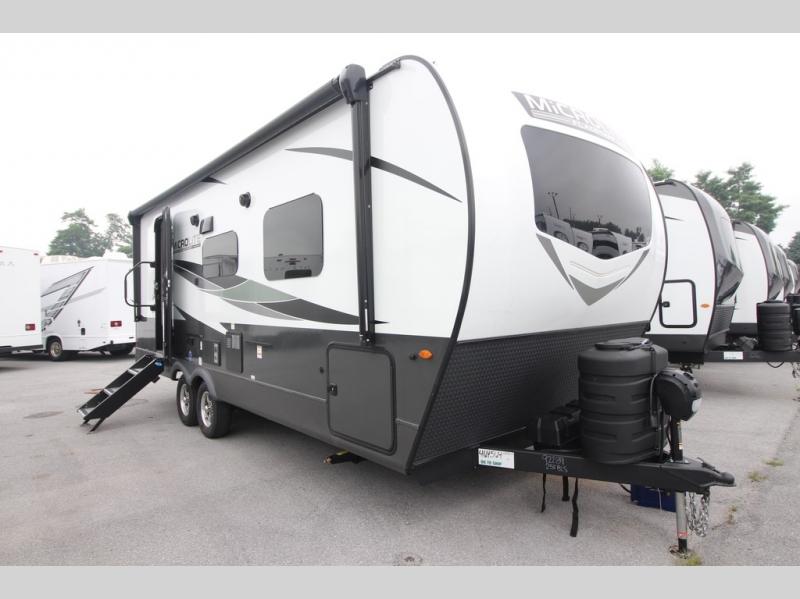 With any Flagstaff Micro Lite travel trailer by Forest River you will enjoy lightweight towing, durable construction, and added interior comforts to make each trip memorable! Each model features a torsion axle, Rubber-Ryde suspension, nitrogen filled, Goodyear Endurance tires, and easy lube axles with Nev-R-Adjust brakes for smooth towing from home to campground. The 6-sided aluminum framed construction provides a strong foundation so you can enjoy your RV for years to come, plus electronically controlled heated holding tanks and an enclosed underbelly will let you camp all year long. Head inside to find hybrid woven flooring in the slide outs, Sedona wood cabinetry, solid surface kitchen countertops, and many more amenities. These travel trailers also include exterior conveniences for hassle-free camping, like the power tongue jack, magnetic compartment door catches, Keyed Alike locks, and rear ladder to name a few!