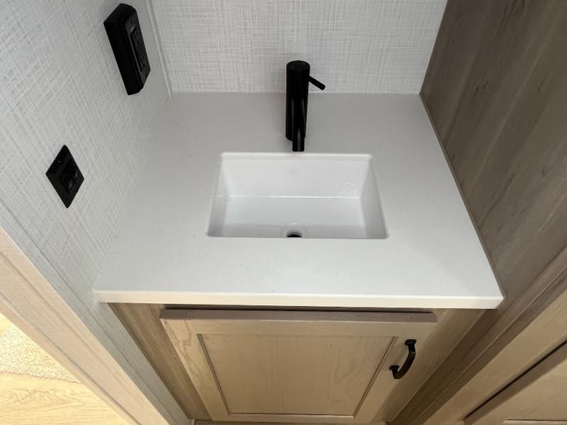 With any Flagstaff Micro Lite travel trailer by Forest River you will enjoy lightweight towing, durable construction, and added interior comforts to make each trip memorable! Each model features a torsion axle, Rubber-Ryde suspension, nitrogen filled, Goodyear Endurance tires, and easy lube axles with Nev-R-Adjust brakes for smooth towing from home to campground. The 6-sided aluminum framed construction provides a strong foundation so you can enjoy your RV for years to come, plus electronically controlled heated holding tanks and an enclosed underbelly will let you camp all year long. Head inside to find hybrid woven flooring in the slide outs, Sedona wood cabinetry, solid surface kitchen countertops, and many more amenities. These travel trailers also include exterior conveniences for hassle-free camping, like the power tongue jack, magnetic compartment door catches, Keyed Alike locks, and rear ladder to name a few!