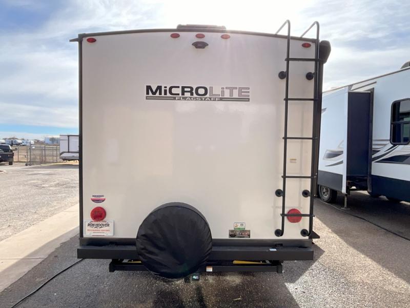 With any Flagstaff Micro Lite travel trailer by Forest River you will enjoy lightweight towing, durable construction, and added interior comforts to make each trip memorable! Each model features a torsion axle, Rubber-Ryde suspension, nitrogen filled, Goodyear Endurance tires, and easy lube axles with Nev-R-Adjust brakes for smooth towing from home to campground. The 6-sided aluminum framed construction provides a strong foundation so you can enjoy your RV for years to come, plus electronically controlled heated holding tanks and an enclosed underbelly will let you camp all year long. Head inside to find hybrid woven flooring in the slide outs, Sedona wood cabinetry, solid surface kitchen countertops, and many more amenities. These travel trailers also include exterior conveniences for hassle-free camping, like the power tongue jack, magnetic compartment door catches, Keyed Alike locks, and rear ladder to name a few!