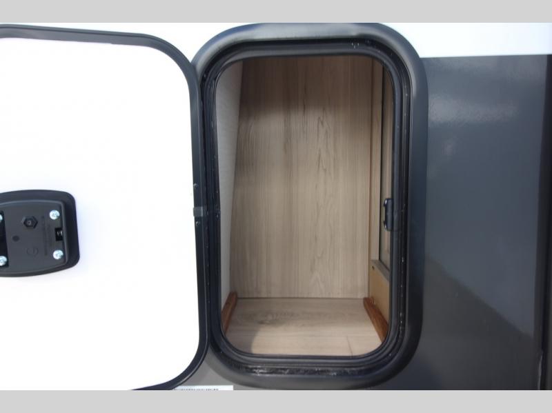This Flagstaff Micro Lite travel trailer is going to make your camping dreams come true! With a queen bed slide and a large wardrobe in the private bedroom, you will have all that you need for sleeping and storing your belongings. Plus, the second exterior entry door leads right into the bedroom so that you can escape for an early morning run without running through the entire trailer to get outside. The front kitchen is open and accommodating with its helpful tools, and the 67" theater seat is right next to the 12V refrigerator on the slide out. Right next to the front entry door is a coat closet/pantry so you can keep your jackets readily available, and there is also a linen closet in the walk-through bath so that you can keep your towels ready for your shower.