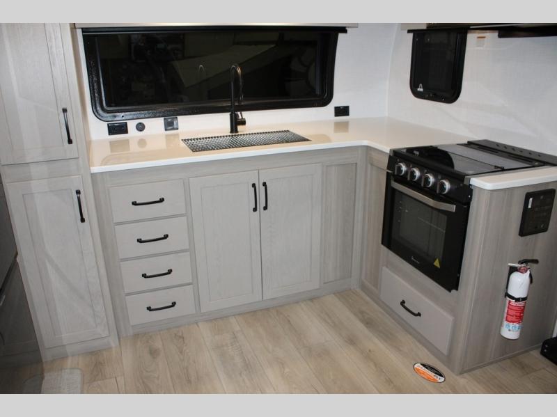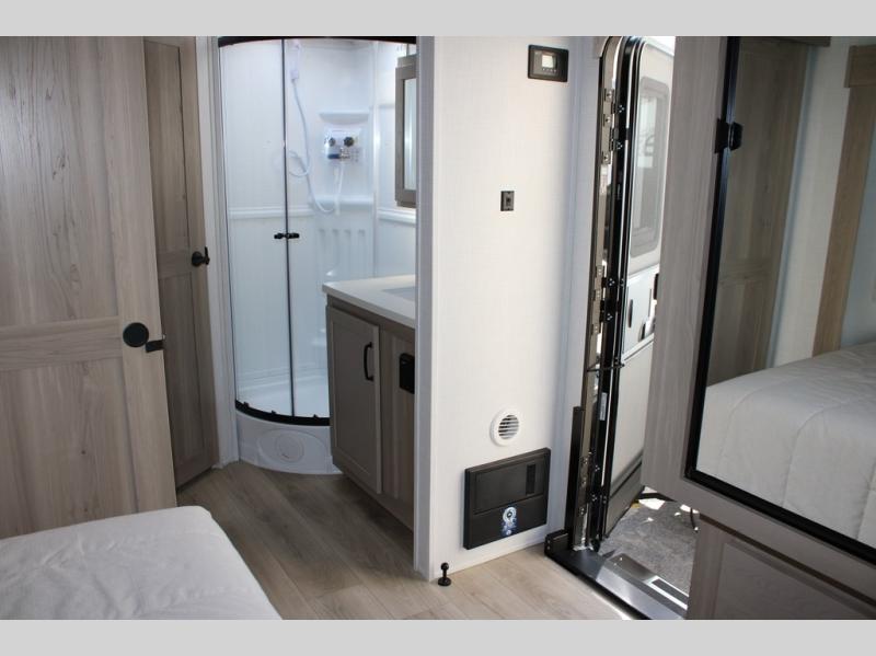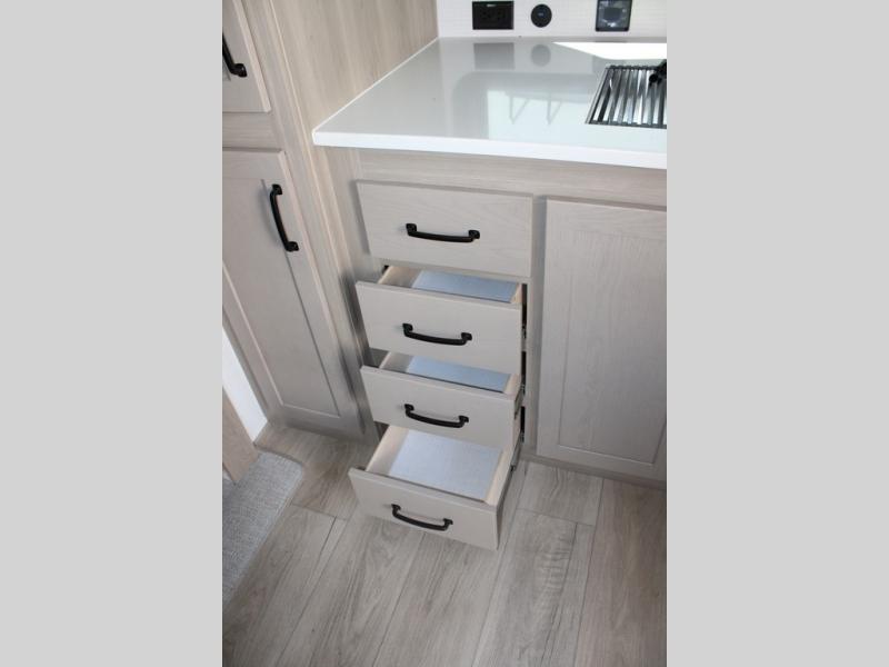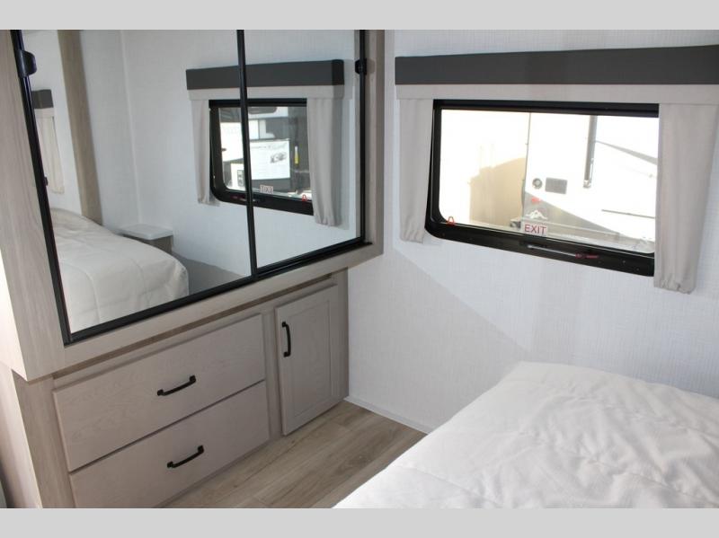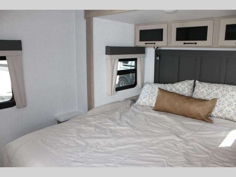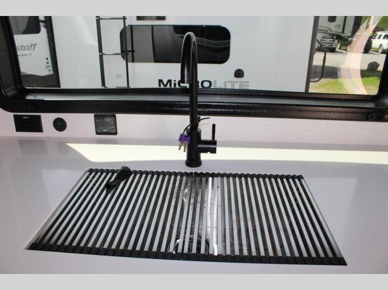 With any Flagstaff Micro Lite travel trailer by Forest River you will enjoy lightweight towing, durable construction, and added interior comforts to make each trip memorable! Each model features a torsion axle, Rubber-Ryde suspension, nitrogen filled, Goodyear Endurance tires, and easy lube axles with Nev-R-Adjust brakes for smooth towing from home to campground. The 6-sided aluminum framed construction provides a strong foundation so you can enjoy your RV for years to come, plus electronically controlled heated holding tanks and an enclosed underbelly will let you camp all year long. Head inside to find hybrid woven flooring in the slide outs, Sedona wood cabinetry, solid surface kitchen countertops, and many more amenities. These travel trailers also include exterior conveniences for hassle-free camping, like the power tongue jack, magnetic compartment door catches, Keyed Alike locks, and rear ladder to name a few!
