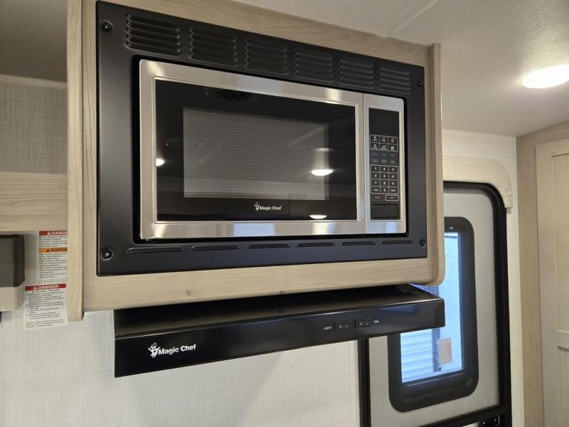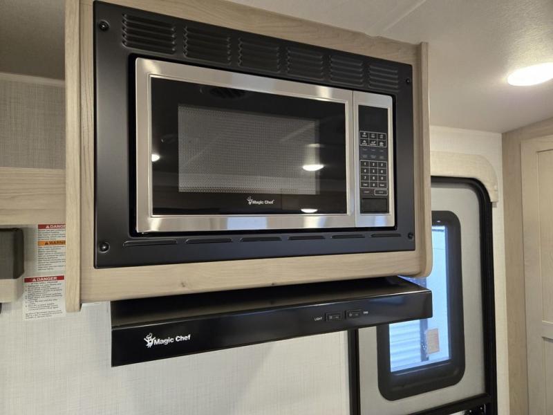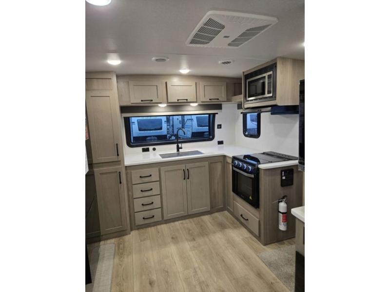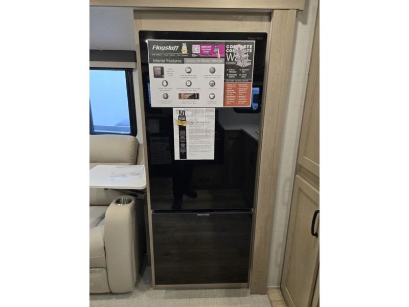 With any Flagstaff Micro Lite travel trailer by Forest River you will enjoy lightweight towing, durable construction, and added interior comforts to make each trip memorable! Each model features a torsion axle, Rubber-Ryde suspension, nitrogen filled, Goodyear Endurance tires, and easy lube axles with Nev-R-Adjust brakes for smooth towing from home to campground. The 6-sided aluminum framed construction provides a strong foundation so you can enjoy your RV for years to come, plus electronically controlled heated holding tanks and an enclosed underbelly will let you camp all year long. Head inside to find hybrid woven flooring in the slide outs, Sedona wood cabinetry, solid surface kitchen countertops, and many more amenities. These travel trailers also include exterior conveniences for hassle-free camping, like the power tongue jack, magnetic compartment door catches, Keyed Alike locks, and rear ladder to name a few!