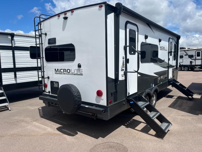 With any Flagstaff Micro Lite travel trailer by Forest River you will enjoy lightweight towing, durable construction, and added interior comforts to make each trip memorable! Each model features a torsion axle, Rubber-Ryde suspension, nitrogen filled, Goodyear Endurance tires, and easy lube axles with Nev-R-Adjust brakes for smooth towing from home to campground. The 6-sided aluminum framed construction provides a strong foundation so you can enjoy your RV for years to come, plus electronically controlled heated holding tanks and an enclosed underbelly will let you camp all year long. Head inside to find hybrid woven flooring in the slide outs, Sedona wood cabinetry, solid surface kitchen countertops, and many more amenities. These travel trailers also include exterior conveniences for hassle-free camping, like the power tongue jack, magnetic compartment door catches, Keyed Alike locks, and rear ladder to name a few!