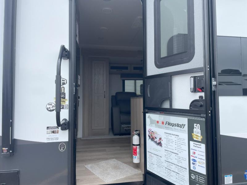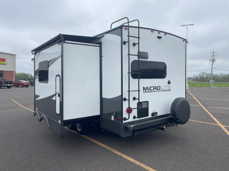 With any Flagstaff Micro Lite travel trailer by Forest River you will enjoy lightweight towing, durable construction, and added interior comforts to make each trip memorable! Each model features a torsion axle, Rubber-Ryde suspension, nitrogen filled, Goodyear Endurance tires, and easy lube axles with Nev-R-Adjust brakes for smooth towing from home to campground. The 6-sided aluminum framed construction provides a strong foundation so you can enjoy your RV for years to come, plus electronically controlled heated holding tanks and an enclosed underbelly will let you camp all year long. Head inside to find hybrid woven flooring in the slide outs, Sedona wood cabinetry, solid surface kitchen countertops, and many more amenities. These travel trailers also include exterior conveniences for hassle-free camping, like the power tongue jack, magnetic compartment door catches, Keyed Alike locks, and rear ladder to name a few!