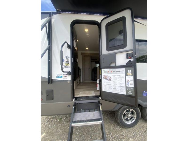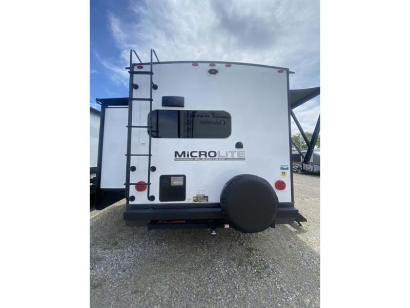 With any Flagstaff Micro Lite travel trailer by Forest River you will enjoy lightweight towing, durable construction, and added interior comforts to make each trip memorable! Each model features a torsion axle, Rubber-Ryde suspension, nitrogen filled, Goodyear Endurance tires, and easy lube axles with Nev-R-Adjust brakes for smooth towing from home to campground. The 6-sided aluminum framed construction provides a strong foundation so you can enjoy your RV for years to come, plus electronically controlled heated holding tanks and an enclosed underbelly will let you camp all year long. Head inside to find hybrid woven flooring in the slide outs, Sedona wood cabinetry, solid surface kitchen countertops, and many more amenities. These travel trailers also include exterior conveniences for hassle-free camping, like the power tongue jack, magnetic compartment door catches, Keyed Alike locks, and rear ladder to name a few!