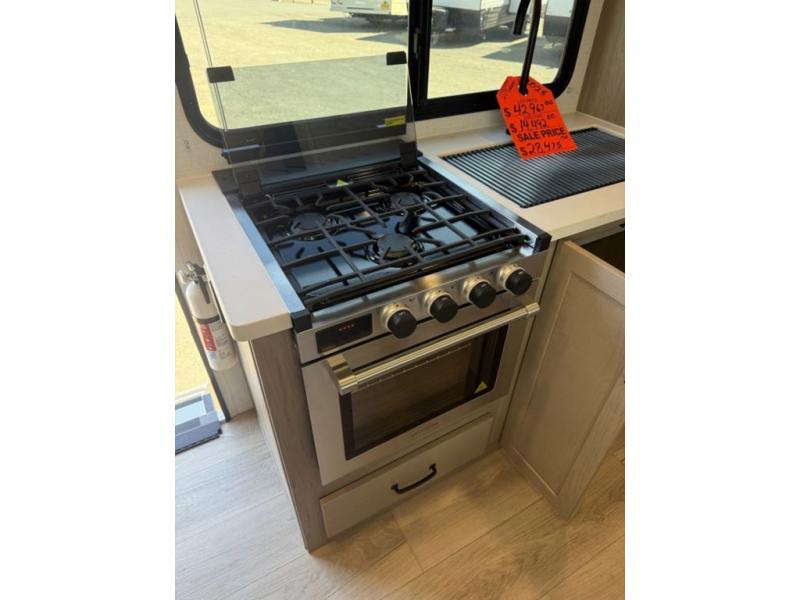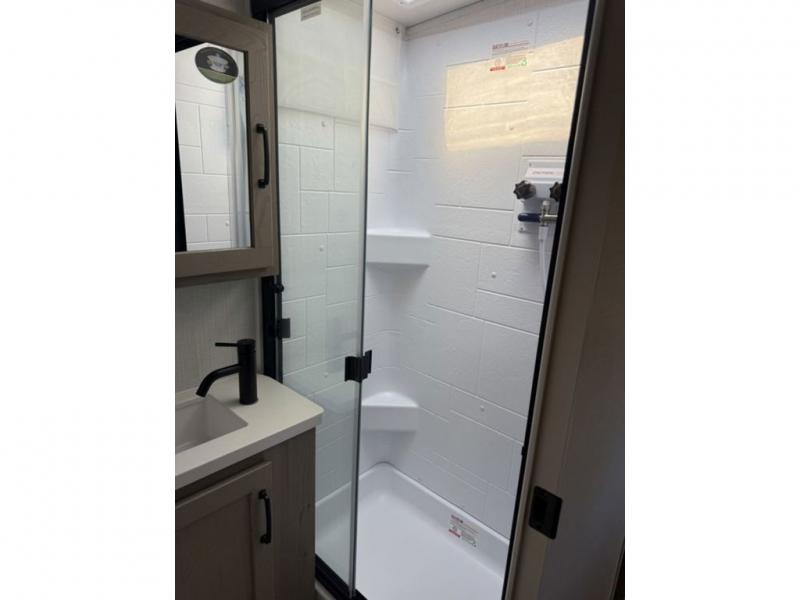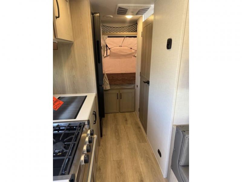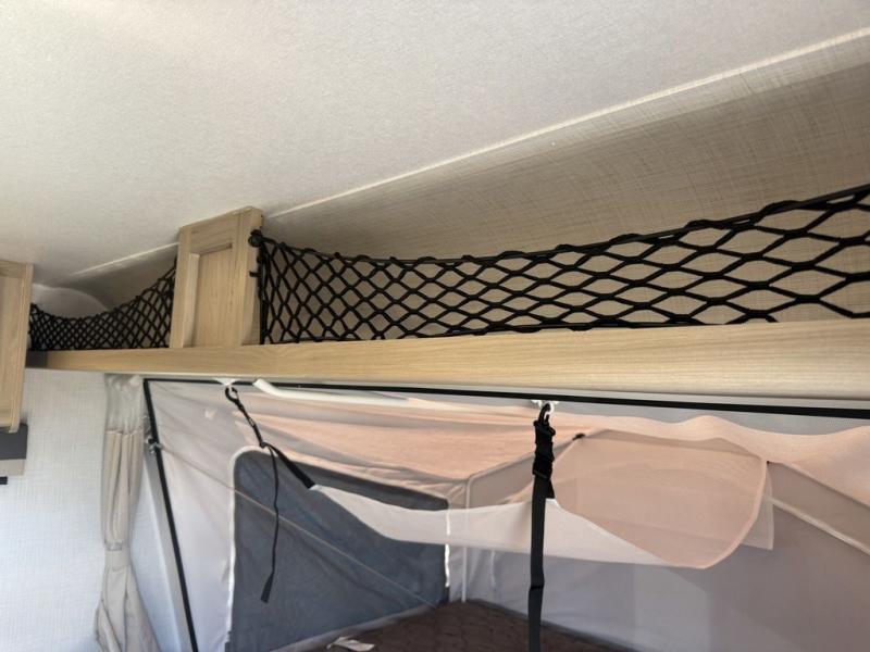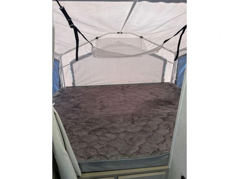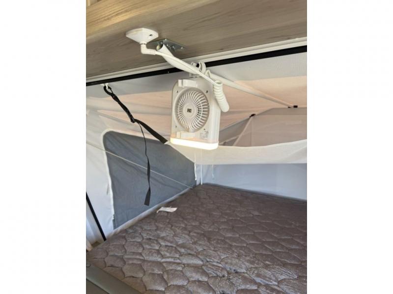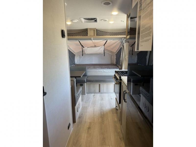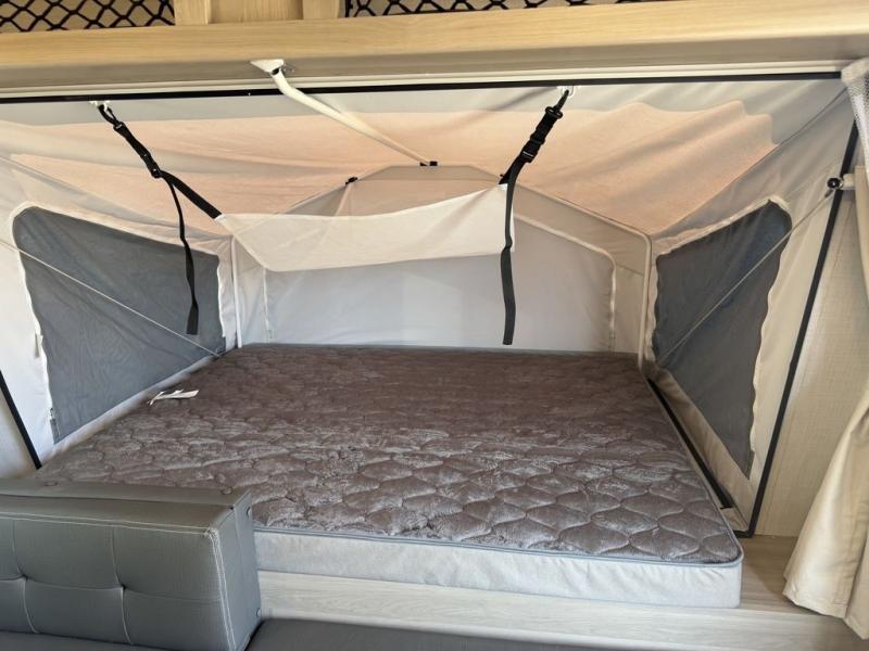 This expandable is perfect for five since there are two queen tent end beds and a 39" booth dinette that can house an extra guest. A bench seat provides extra seating space, and there are shelves to keep your space tidy. You can make lunch on the three burner cooktop inside, or head outdoors to cook on the exterior griddle. There is also a 12' power awning that will give you shade as you visit with friends. Back inside, the full bath will let you freshen up each day, and the 12V smart entertainment TV will make it a movie night!