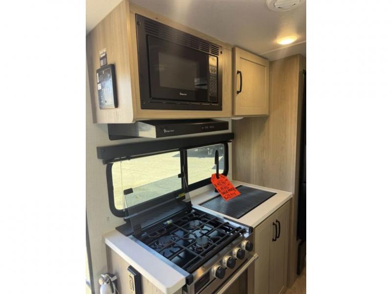 Each Flagstaff Shamrock expandable by Forest River includes an enclosed underbelly, interior and exterior composite sidewall construction, and a vinyl/rubber composite roofing membrane for added durability. The power tongue jack will make hitching up easier than ever, and the torsion axle, Rubber-Ryde suspension and Goodyear Endurance tires will provide smooth towing. You will also appreciate having a 200W roof solar panel with a 1800W inverter, an outside spray port, Keyed-Alike locks, plus many more exterior conveniences. The interior is made to feel more like home with solid wood cabinet doors and drawers, marine grade carpet in the slides, Sedona Wood cabinetry, plus seamless kitchen countertops.