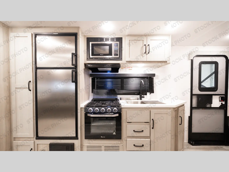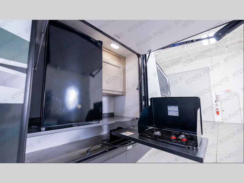 You will feel right at home in this spacious expandable thanks to the large slide out and the fireplace with a TV. Within the slide you'll find a booth dinette and hide-a-bed sofa, or you can choose the optional theater seat in place of the sofa. There is a full kitchen with a three burner cooktop, a 12V refrigerator, plus a microwave oven, and if you enjoy cooking outdoors, you're going to love the outside kitchen! You'll also find an 18' power awning outdoors, along with three exterior storage compartments and Solid Step entry steps.