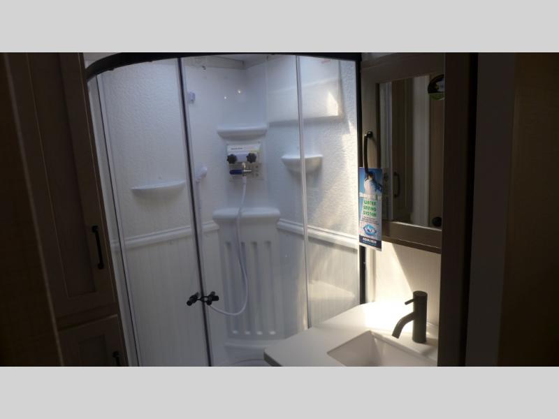 With any Flagstaff Super Lite travel trailer by Forest River the towing features include the TST tire pressure monitor system with a monitor providing safety on the road, Easy Lube axles and Nev-R adjust brakes, a power tongue jack for easy setup, and rear observation camera prep. Each is built with 6 sided aluminum framed side walls, end wall, front, floor and a roof, a plywood tongue and groove subfloor, electronically controlled heated holding tanks and an enclosed underbelly allowing you to travel during any season. The interior offers a multi-zone stereo with DVD, CD, AM/FM and Bluetooth control, a Showermiser water saving system, designer bedding and so much more!