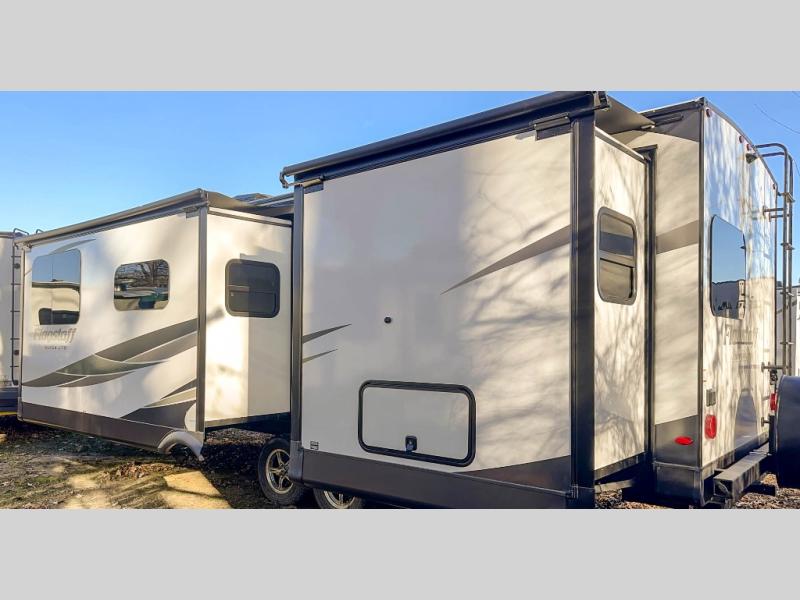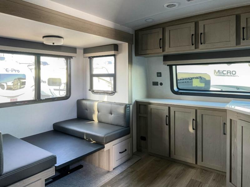 With any Flagstaff Super Lite travel trailer by Forest River the towing features include the TST tire pressure monitor system with a monitor providing safety on the road, Easy Lube axles and Nev-R adjust brakes, a power tongue jack for easy setup, and rear observation camera prep. Each is built with 6 sided aluminum framed side walls, end wall, front, floor and a roof, a plywood tongue and groove subfloor, electronically controlled heated holding tanks and an enclosed underbelly allowing you to travel during any season. The interior includes designer kitchen backsplash, solid surface kitchen countertops, Sedonwood cabinetry, and solid wood cabinet doors and drawers to make you feel right at home.