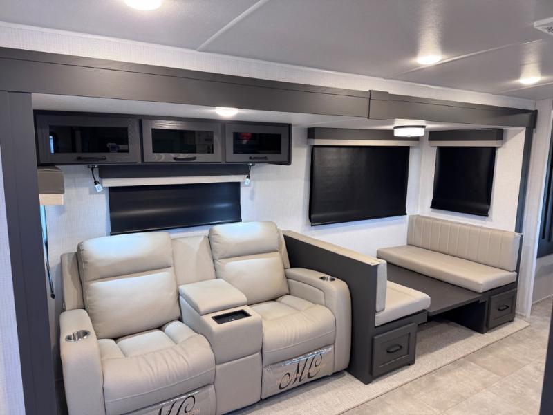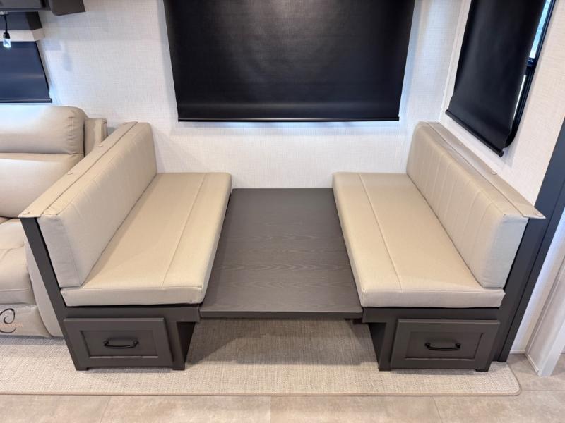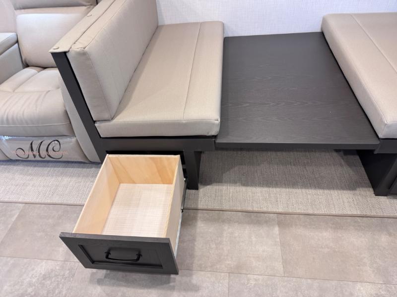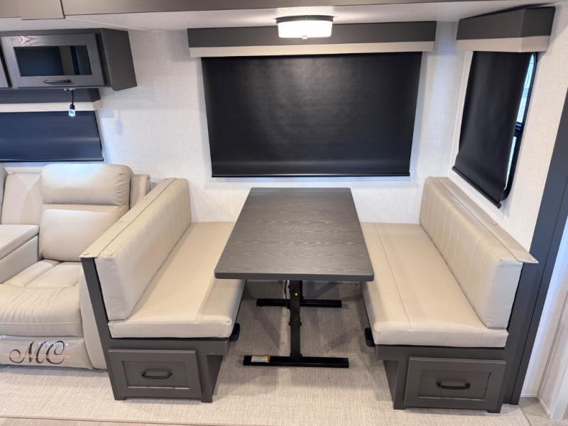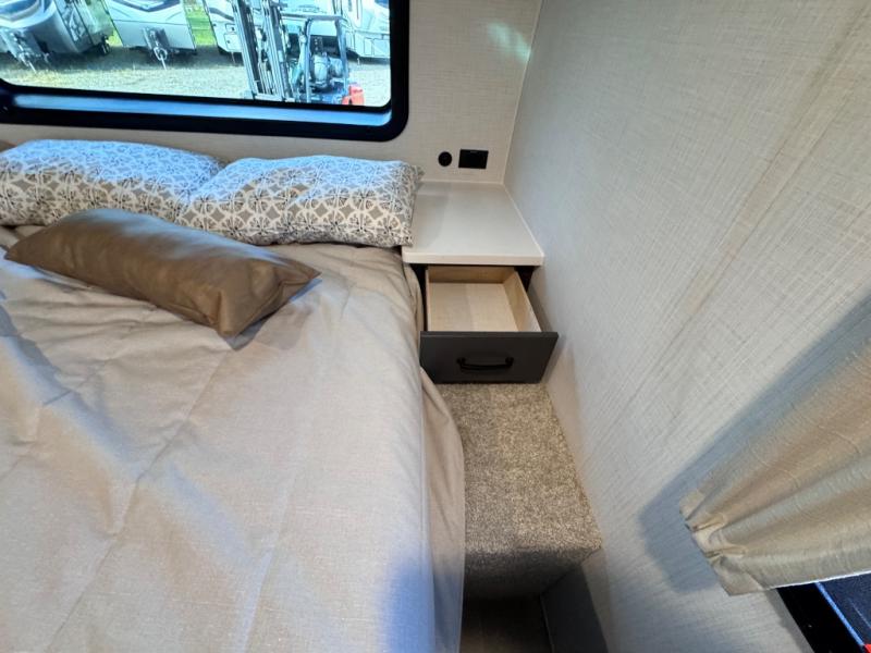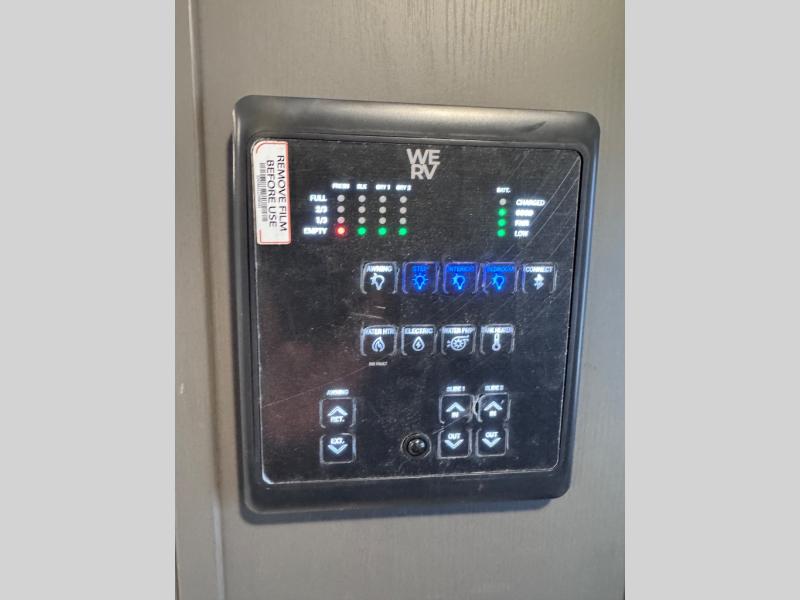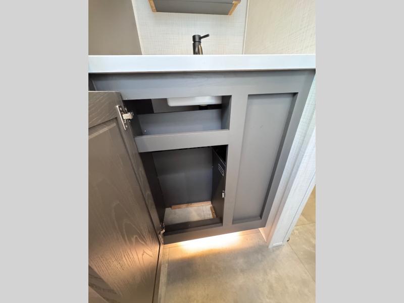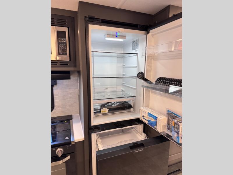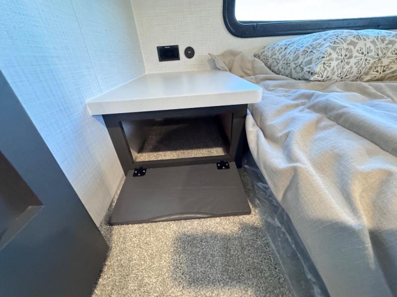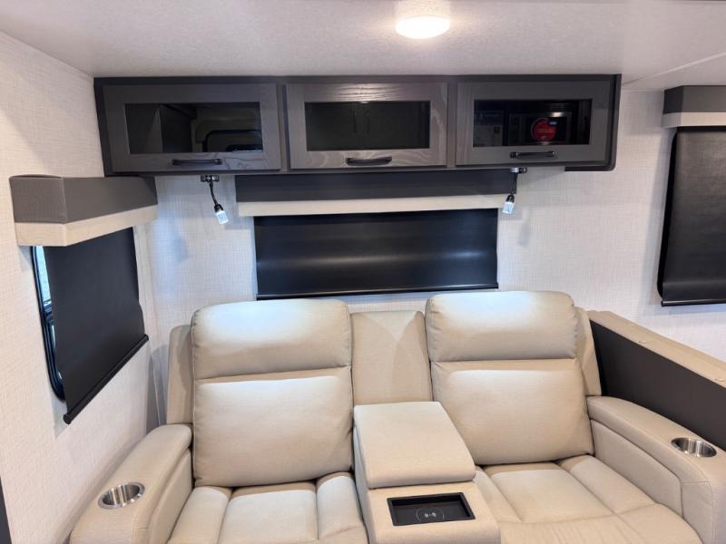 Enjoy inside comforts, and outside conveniences in this trailer. You can relax under the 21' awning which offers an outdoor living area protected from the elements, and a pass-thru storage with an optional steel sliding tray gives you the option to easily access your gear. You'll find ample storage space inside as well, including a walk-in pantry by the entry door for convenience! The cook will have full amenities to make meals, and when you are ready to sleep, head to the front bedroom with a queen bed and plenty of storage, and a wardrobe slide out giving you more floor and storage space.