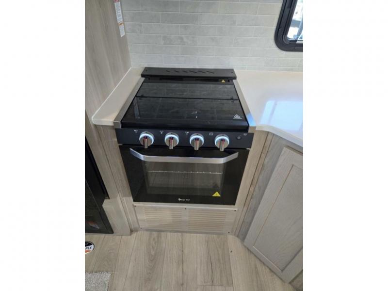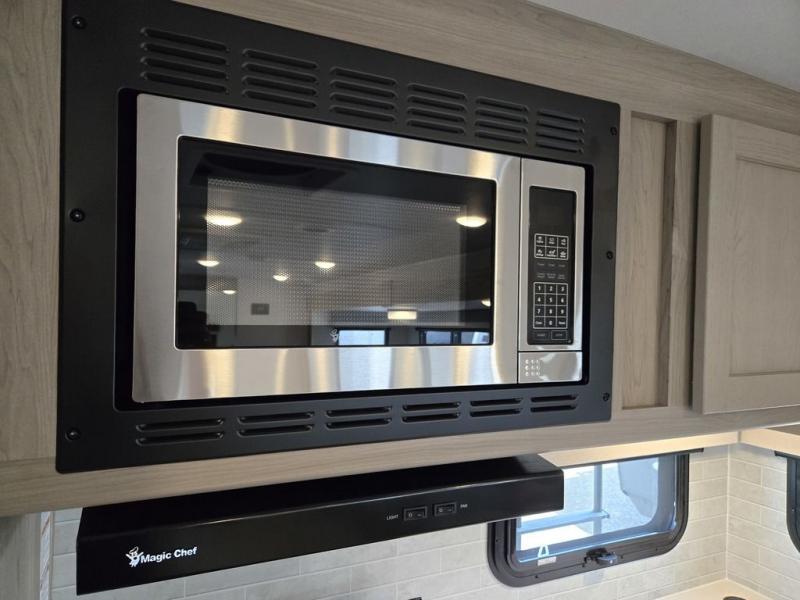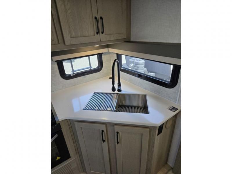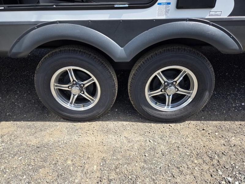 With any Flagstaff Super Lite travel trailer by Forest River the towing features include the TST tire pressure monitor system with a monitor providing safety on the road, Easy Lube axles and Nev-R adjust brakes, a power tongue jack for easy setup, and rear observation camera prep. Each is built with 6 sided aluminum framed side walls, end wall, front, floor and a roof, a plywood tongue and groove subfloor, electronically controlled heated holding tanks and an enclosed underbelly allowing you to travel during any season. The interior includes designer kitchen backsplash, solid surface kitchen countertops, Sedonwood cabinetry, and solid wood cabinet doors and drawers to make you feel right at home.