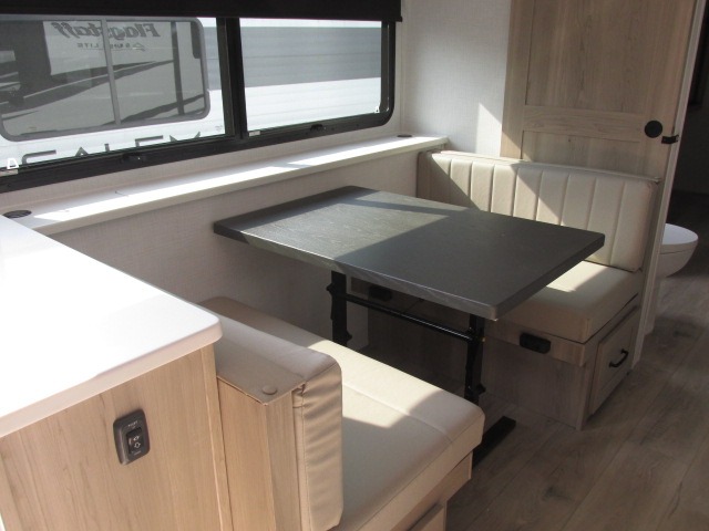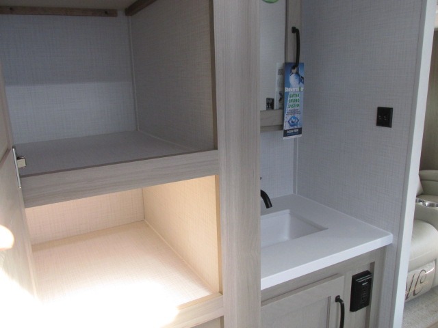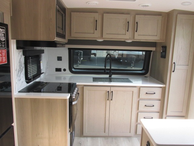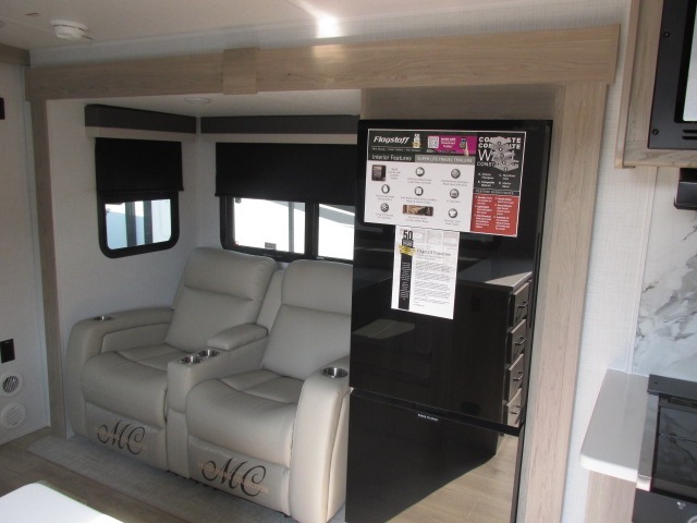 With any Flagstaff Super Lite travel trailer by Forest River the towing features include the TST tire pressure monitor system with a monitor providing safety on the road, Easy Lube axles and Nev-R adjust brakes, a power tongue jack for easy setup, and rear observation camera prep. Each is built with 6 sided aluminum framed side walls, end wall, front, floor and a roof, a plywood tongue and groove subfloor, electronically controlled heated holding tanks and an enclosed underbelly allowing you to travel during any season. The interior includes designer kitchen backsplash, solid surface kitchen countertops, Sedonwood cabinetry, and solid wood cabinet doors and drawers to make you feel right at home.