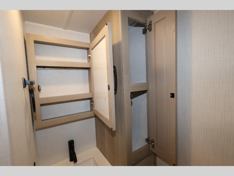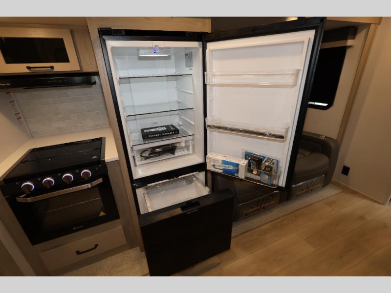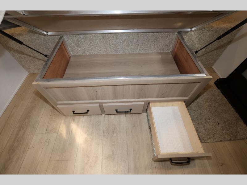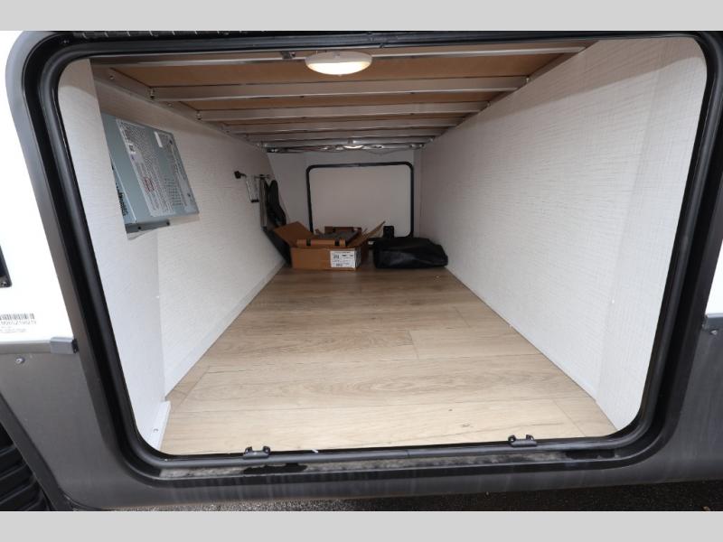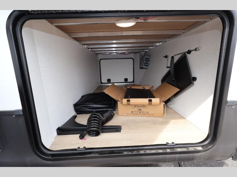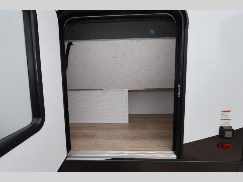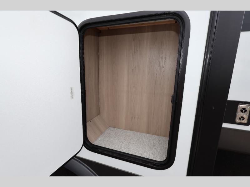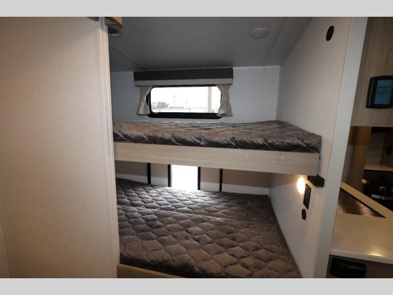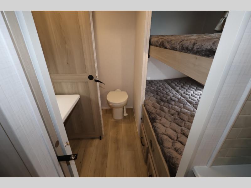 Get ready for a fun camping experience with your family and friends in this trailer that sleeps five to six! There is a rear bunkhouse suite with 43" x 74" bunks, a desk, and a half bath for added convenience. You will also find a front master bedroom with a queen bed, easy access to the walk-thru bath, and one of the dual entry doors. There is abundant storage for your snacks and dry ingredients in the pantry/wardrobe, your cold items in the 12V refrigerator, and throughout the interior and along the exterior. You can load the larger gear in the front pass-thru with an optional steel sliding tray, and other outdoor items in the rear or side storage compartments.