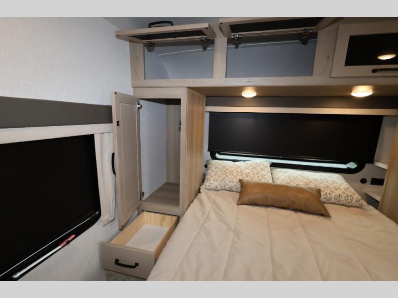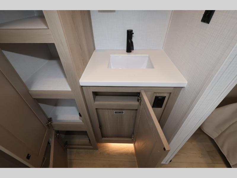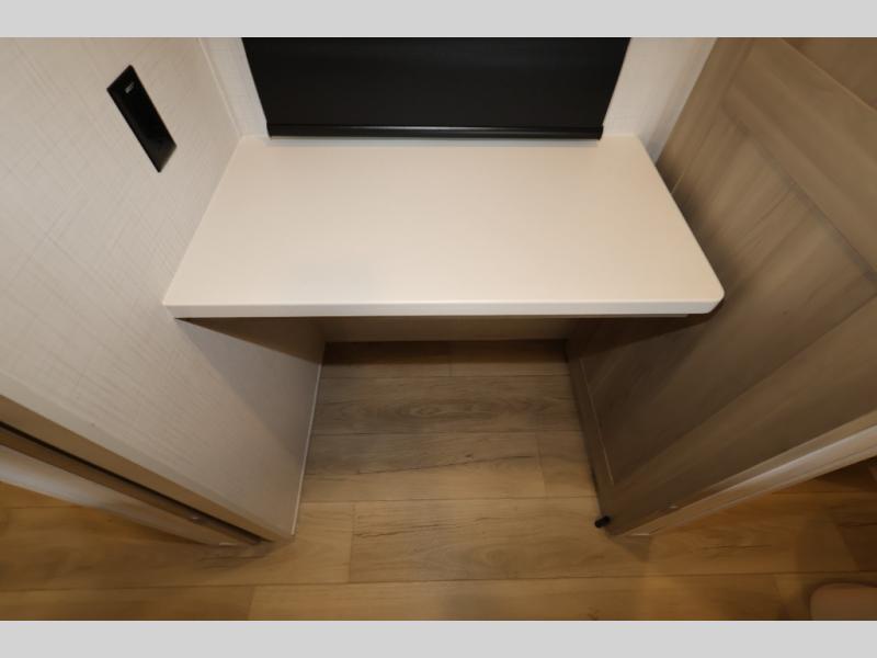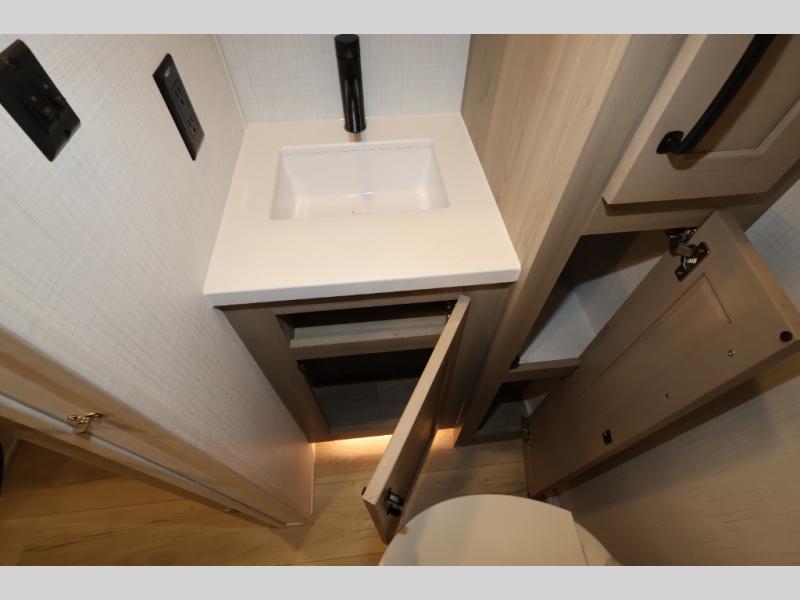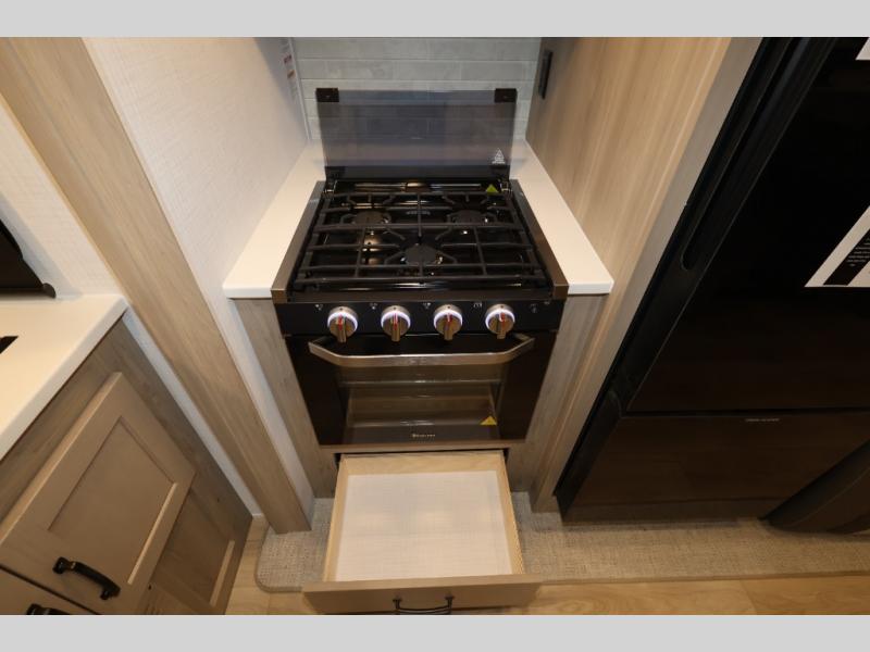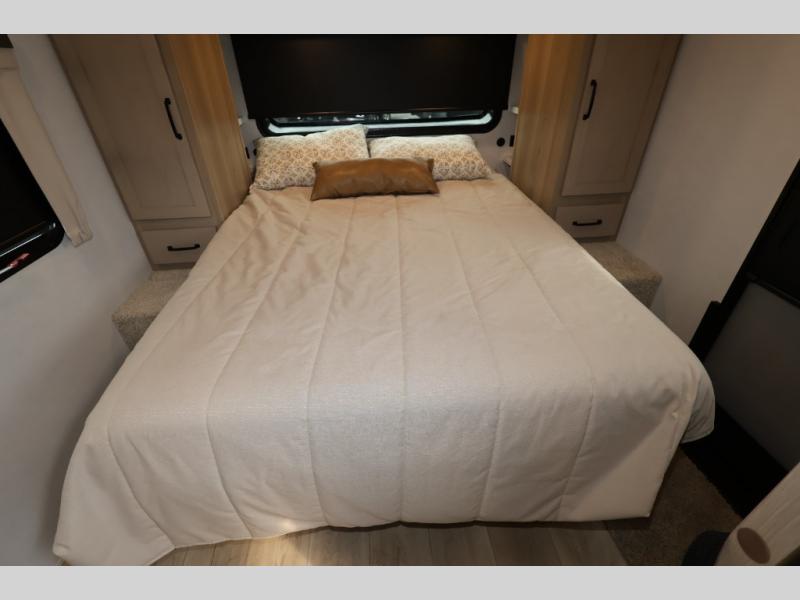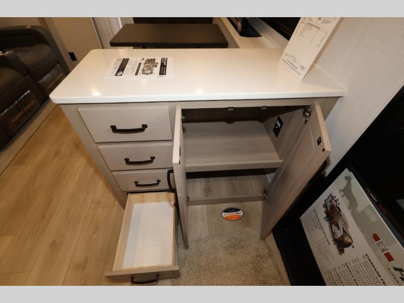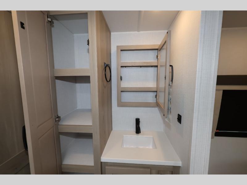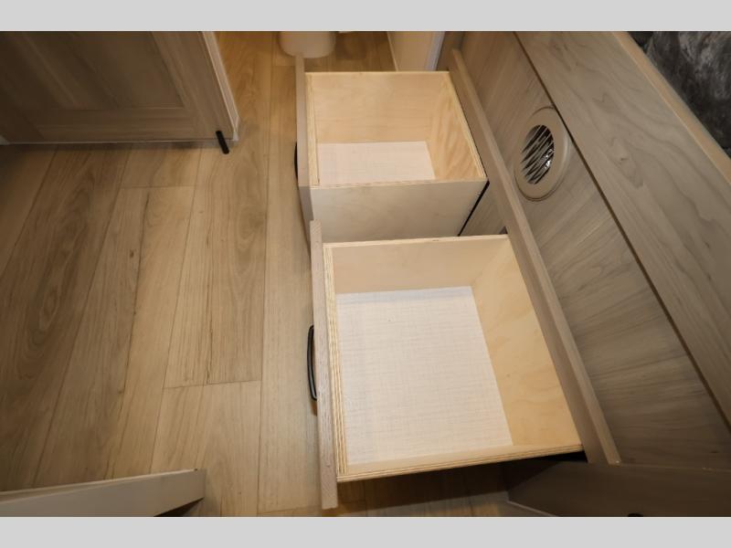Get ready for a fun camping experience with your family and friends in this trailer that sleeps five to six! There is a rear bunkhouse suite with 43" x 74" bunks, a desk, and a half bath for added convenience. You will also find a front master bedroom with a queen bed, easy access to the walk-thru bath, and one of the dual entry doors. There is abundant storage for your snacks and dry ingredients in the pantry/wardrobe, your cold items in the 12V refrigerator, and throughout the interior and along the exterior. You can load the larger gear in the front pass-thru with an optional steel sliding tray, and other outdoor items in the rear or side storage compartments.