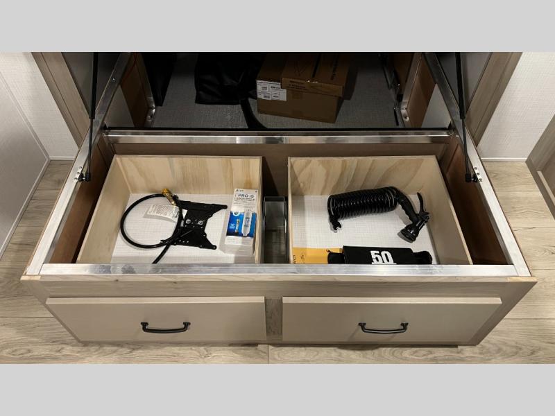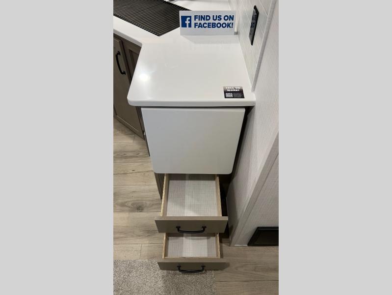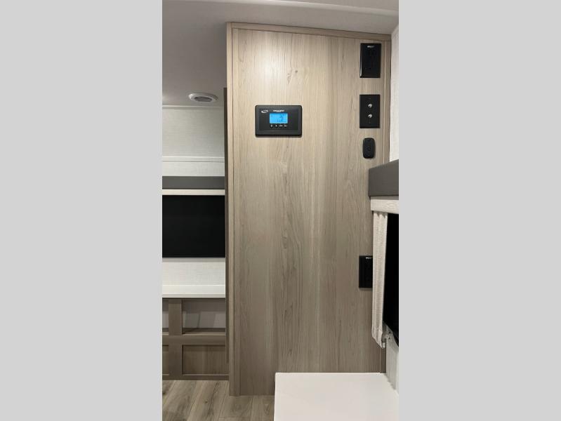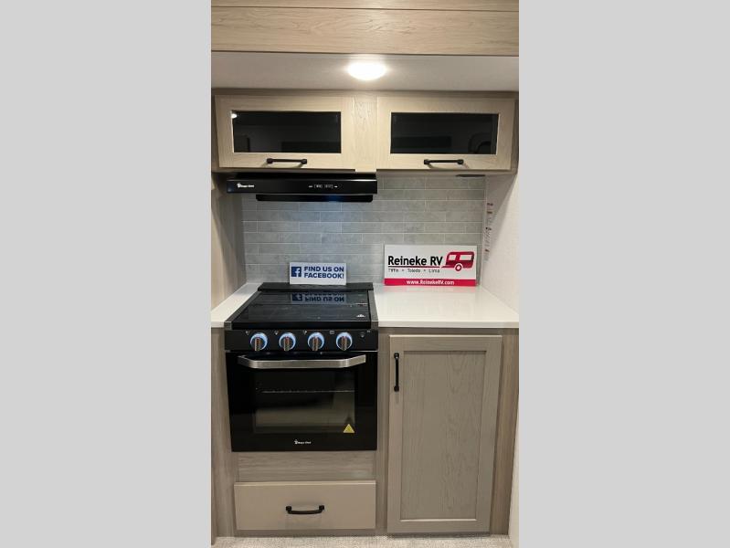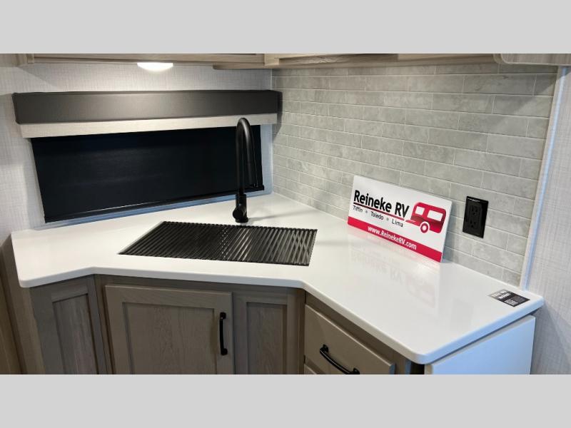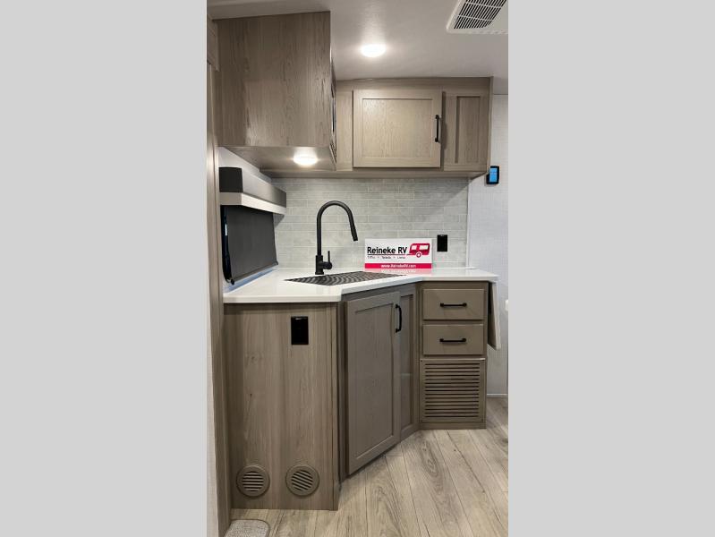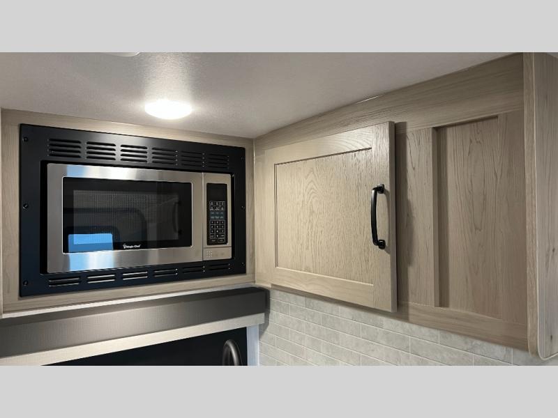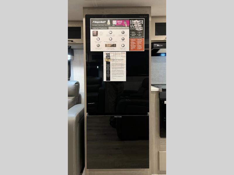 With any Flagstaff Super Lite travel trailer by Forest River the towing features include the TST tire pressure monitor system with a monitor providing safety on the road, Easy Lube axles and Nev-R adjust brakes, a power tongue jack for easy setup, and rear observation camera prep. Each is built with 6 sided aluminum framed side walls, end wall, front, floor and a roof, a plywood tongue and groove subfloor, electronically controlled heated holding tanks and an enclosed underbelly allowing you to travel during any season. The interior includes designer kitchen backsplash, solid surface kitchen countertops, Sedonwood cabinetry, and solid wood cabinet doors and drawers to make you feel right at home.