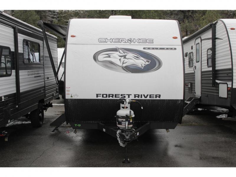 Each one of these Forest River Cherokee Wolf Pup travel trailers are lightweight and easy to tow! They are fully self contained with ample tank capacities, an abundance of storage space, and filled with at home amenities. The aerodynamic smooth radius front profile, the Power Gear frame technology, and the space saver rail design make them easier to maneuver. You will also appreciate the seamless roofing membrane with heat reflectivity to keep the sun from making your unit a hot box. The tongue and groove plywood flooring will hold up for years of fun and the USB charging stations help to keep your electronics at 100% while you're away. Come find the best model for you today!