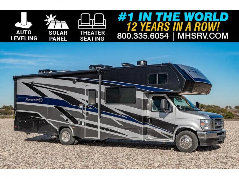 MSRP $171,889. New 2025 Forest River Forester Class C RV Model 2861DS measures approximately 30 feet 9 inches in length featuring 2 slides, cab over loft, Ford E-450 Chassis and a Ford 7.3L V8 engine. This amazing class C RV features the Forester Premium Camping Package which includes a EZRYDE suspension system, arctic package, 15K AC w/heat pump, stainless steel convection microwave, 10CU 12V refrigerator, heated remote exterior mirrors, back-up & side view cameras with monitor, in-dash Car android play radio, Winegard 360+ antenna w/ gateway Wifi, 12V bedroom TV, slide room Toppers, ultra leather driver/passenger seating, aluminum running boards, LP quick connect and more. Additional options include the dual high efficiency A/Cs with energy shedding system, 12V power theater seating, roof mounted solar 12V charging system, Arctic Package, swivel driver seat, full body paint and automatic leveling jacks. For additional details on this unit and our entire inventory including brochures, window sticker, videos, photos, reviews & testimonials as well as additional information about Motor Home Specialist and our manufacturers please visit us at MHSRV.com or call 800-335-6054. At Motor Home Specialist, we DO NOT charge any prep or orientation fees like you will find at other dealerships. All sale prices include a 200-point inspection, interior & exterior wash, detail service and a fully automated high-pressure rain booth test and coach wash that is a standout service unlike that of any other in the industry. You will also receive a thorough coach orientation with an MHSRV technician, a night stay in our delivery park featuring landscaped and covered pads with full hook-ups and much more! Read Thousands upon Thousands of 5-Star Reviews at MHSRV.com and See What They Had to Say About Their Experience at Motor Home Specialist. WHY PAY MORE? WHY SETTLE FOR LESS?