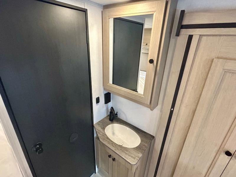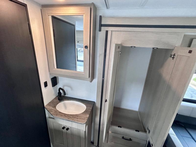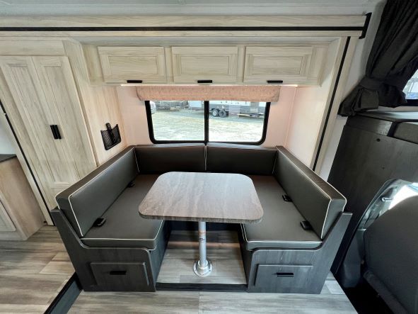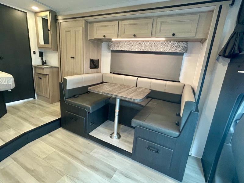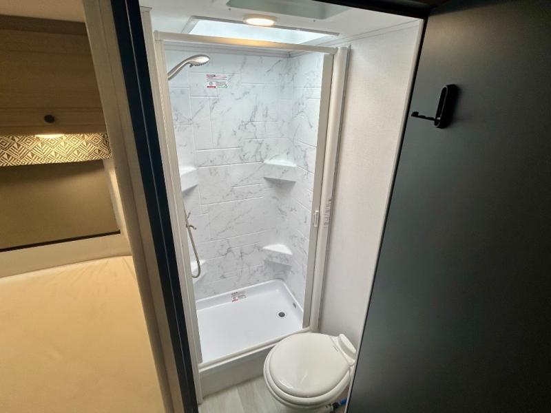 Looking for style, upgraded amenities, and comfort in your next coach? This Forester LE offers a way to travel the country with your own accommodations, plus offers sleeping space to bring along your family and/or friends. The bunk over the cab is queen-sized, plus the rear corner offers a queen bed. And you can utilize the U-dinette as extra sleeping space after dining, playing games and relaxing. The kitchen offers a 10.7 cu. ft. 12V refrigerator, a convection microwave, a recessed three-burner range, soft touch self-closing drawer guides and a cordless 12V charging plate. The private toilet and shower give you a place to get cleaned up, and the bathroom sink is just outside the door allowing someone else the ability to brush their teeth and wash their face.