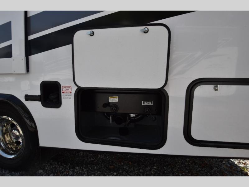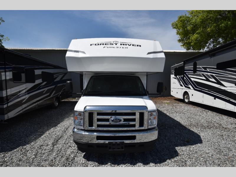 With any Forester LE Class C gas motorhome by Forest River, you will enjoy premier features such as the backup camera/side view cameras with a 3-way monitor, the Winegard Air 360+ digital antenna, and the 15,000 BTU ceiling ducted, ultra quiet roof air with a heat pump when traveling during the warmer months. The exterior includes aluminum framed laminated sidewalls, gel coat exterior fiberglass, a one-piece fiberglass front cap, and slide room toppers. Some of the interior top features are the Maxx Air multi-speed power fan with a cover in the kitchen, the high pressure oxygen infused shower head, and the blackout roller shades for a good night's sleep. Make your selection today!