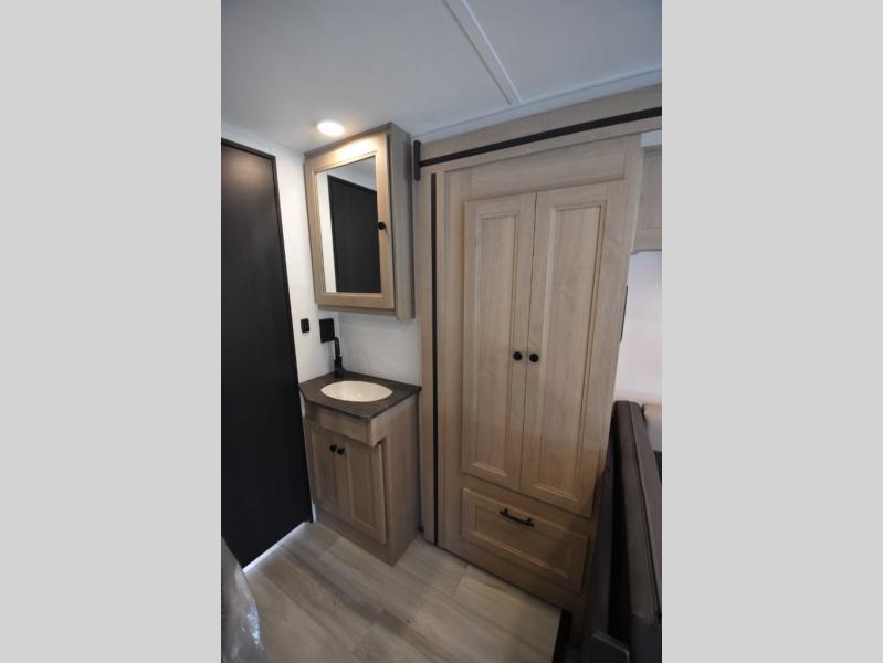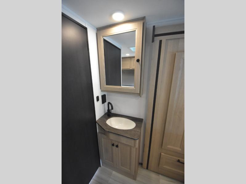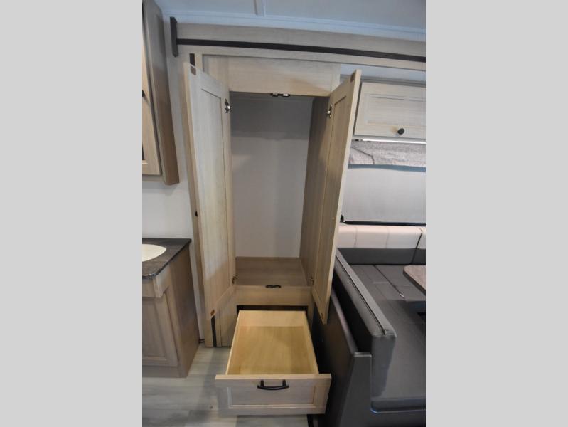 Looking for style, upgraded amenities, and comfort in your next coach? This Forest LE offers a way to travel the country with your own accommodations, plus offers sleeping space to bring along your family and/or friends. The bunk over the cab a queen-sized, plus the rear corner offers a queen bed. And you can utilize the U-dinette as extra sleeping space after dining, playing games and relaxing. The kitchen offers a 10.7 cu. ft. 12V refrigerator, a convection microwave, a recessed three-burner range, soft touch self-closing drawer guides and a cordless 12V charging plate. The private toilet and shower room give you a place to get cleaned up, and the bathroom sink is just outside the door allowing someone else the ability to brush their teeth and wash their face.
