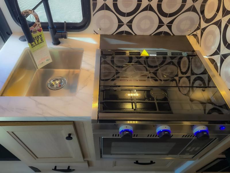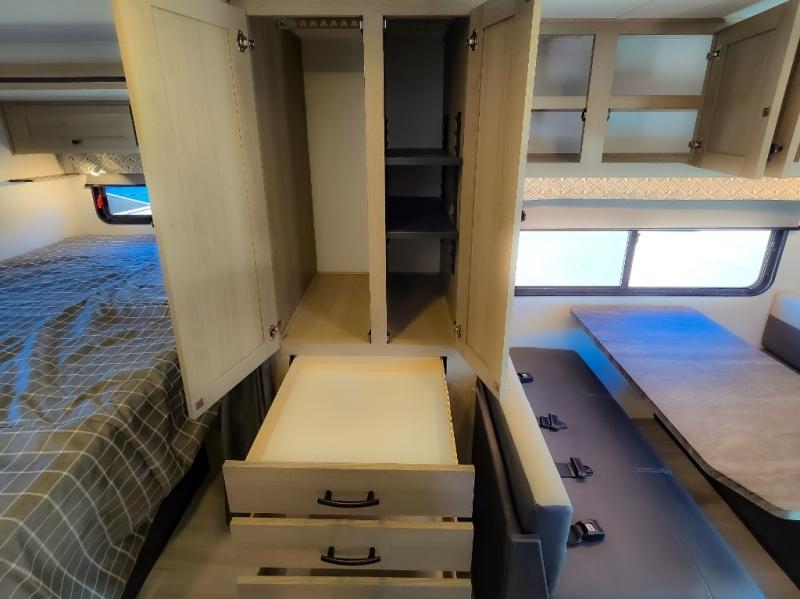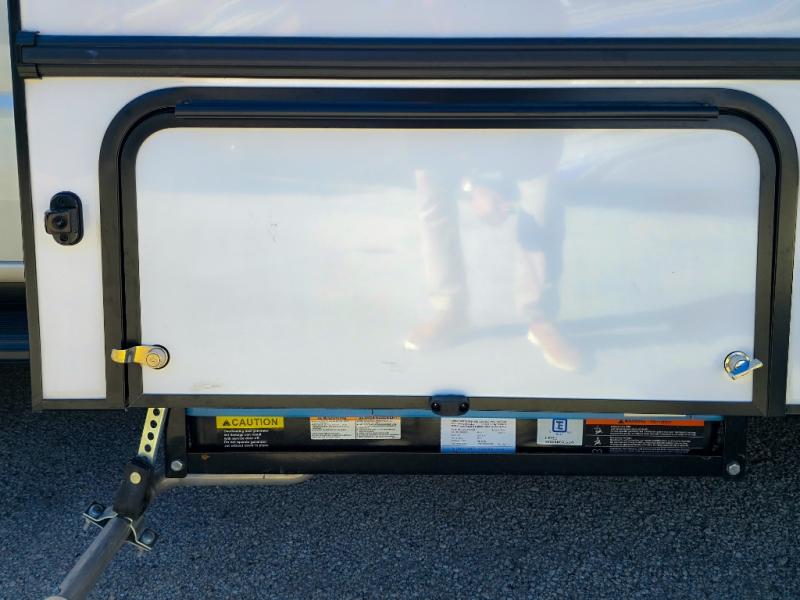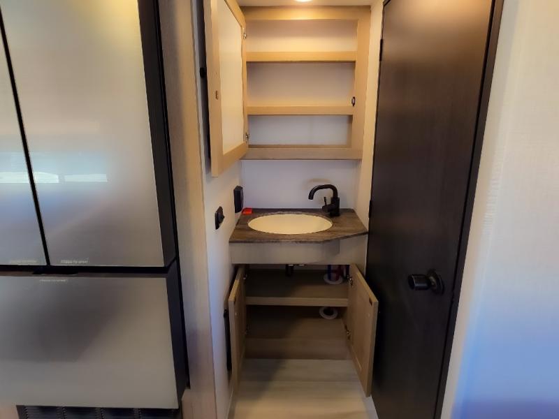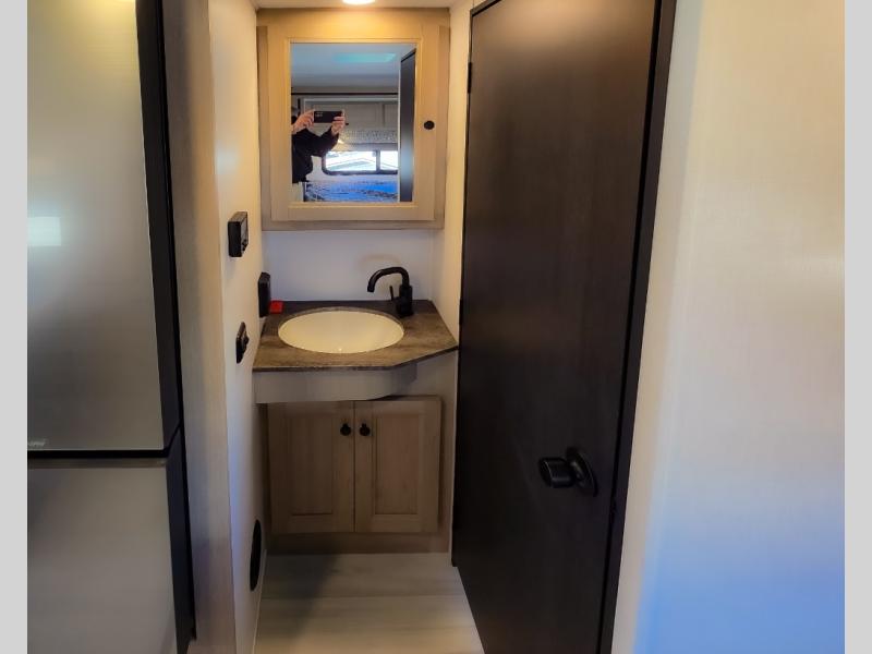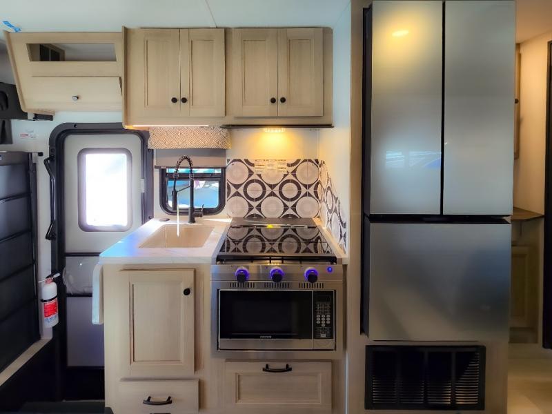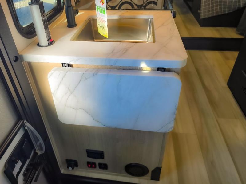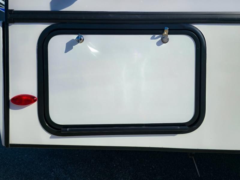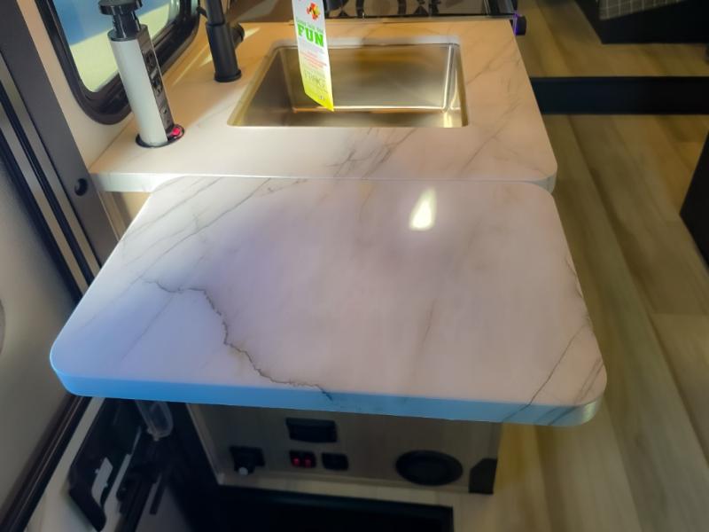 Enjoy trips near and far in this single slide out coach. The kitchen provides a 10.7 cu. ft. 12V refrigerator to store the cold items, a convection microwave and a recessed three-burner range to whip up meals. The private toilet and shower give you a place to get cleaned up, and the bathroom sink is just outside the door. This model includes a queen bed slide out with a wedge mattress, and there is a cab-over bunk for your guests. You can spend your evenings playing cards at the booth dinette, or head outdoors to relax under the 14' power awning with LED lights!