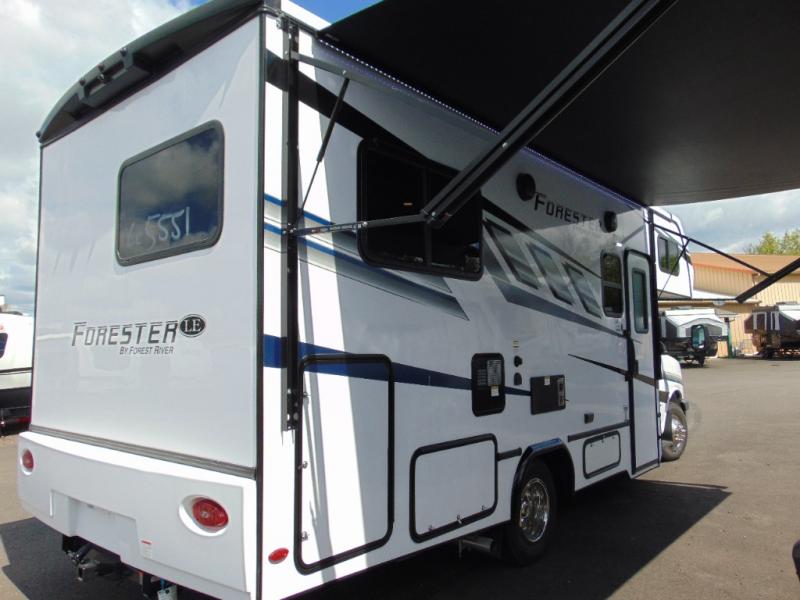 With any Forester LE Class C gas motorhome by Forest River, you will enjoy premier features such as the backup camera/side view cameras with a 3-way monitor, the Winegard Air 360+ digital antenna, and the 15,000 BTU ceiling ducted, ultra quiet roof air with a heat pump when traveling during the warmer months. The exterior includes aluminum framed laminated sidewalls, gel coat exterior fiberglass, a one-piece fiberglass front cap, and slide room toppers. Some of the interior top features are the Maxx Air multi-speed power fan with a cover in the kitchen, the high pressure oxygen infused shower head, and the blackout roller shades for a good night's sleep. Make your selection today!