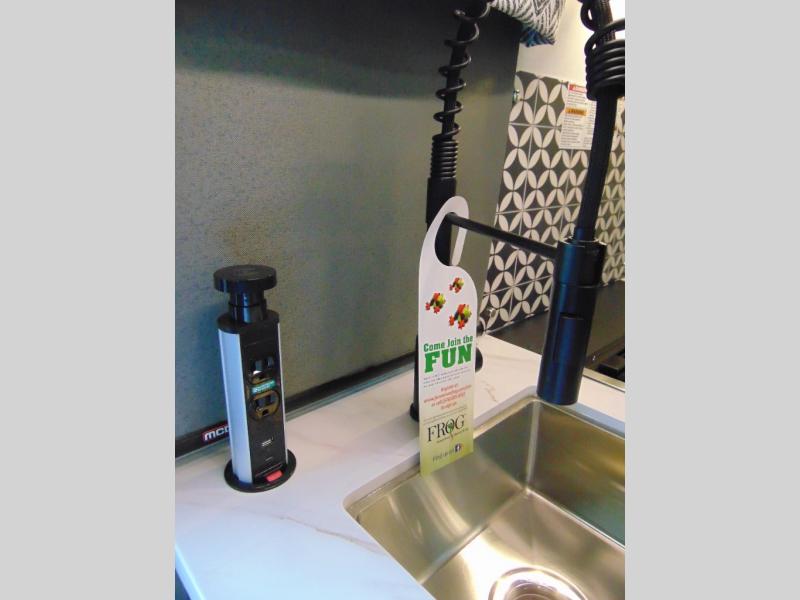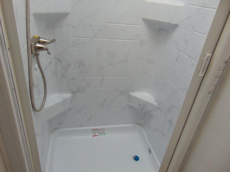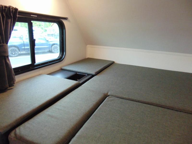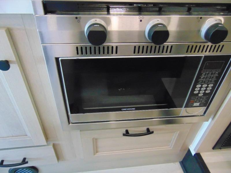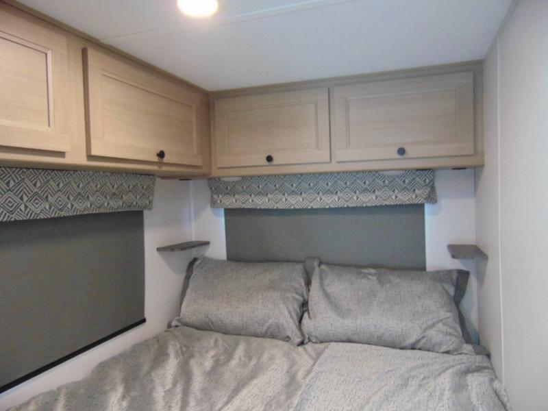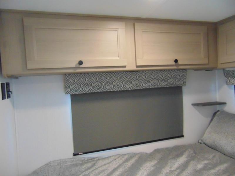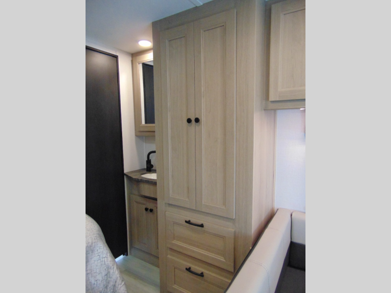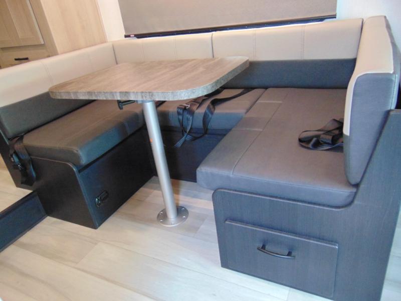 Travel in style with your own accommodations in this coach. You'll find a queen-size cab-over bunk that can be utilized as extra sleeping space or even storage, plus the rear corner offers a queen bed. And don't forget about the U-dinette as extra sleeping space after dining, playing games and relaxing. The kitchen offers a 10.7 cu. ft. 12V refrigerator, a convection microwave, a recessed three-burner range, soft touch self-closing drawer guides and a cordless 12V charging plate. The private toilet and shower room gives you a place to get cleaned up, and the bathroom sink is just outside the door allowing someone else the ability to get ready at the same time.