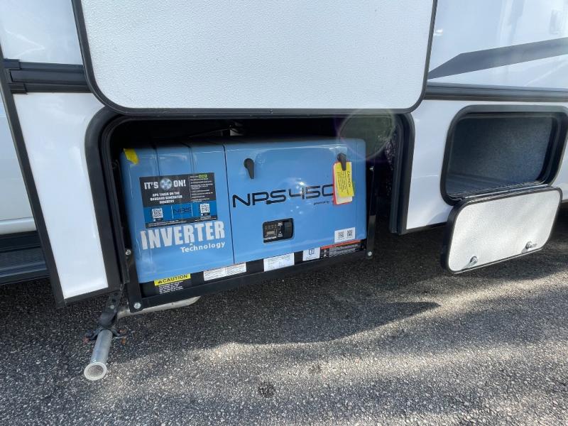 Every trip in this coach will be a trip well spent! You can relax on the sofa across from the 12V TV once you park for the evening, and there is a booth dinette to play a game of cards at. The chef can whip up dinner on the three burner range or in the 1.3 cu. ft. convection microwave, and the 10.7 cu. ft. 12V refrigerator will hold your leftovers perfectly. This model includes a private shower and sink with the private toilet right across the hall so two people can get ready for bed at once, and the rear bedroom will feel just like home with its RV queen bed and dual wardrobes.