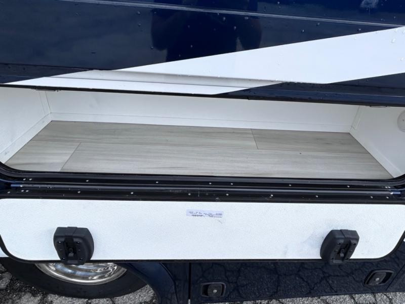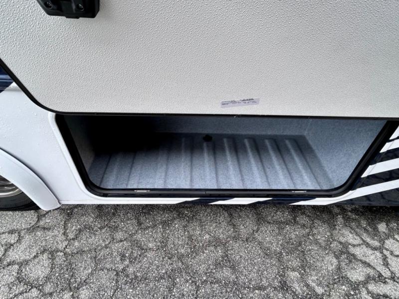 When you are ready to enjoy camping and traveling, take this coach with you! There are leather, swivel captain's seats to ensure your comfort, plus a full bathroom just like home. Once at your destination, easily set up the full-wall slide and power awning, and relax on the U-shaped dinette or outside under the awning. You might even like to add the optional exterior TV. Back inside, you can make meals using the two-burner range and the convection microwave, and the 10.7 cu. ft. 12V refrigerator will hold all your drinks and cold items. There is a flip-up counter extension for more prep space, and a pantry for your dry goods. At night, sleep on an RV queen bed while you watch the 12V TV in the bedroom, and your friends can sleep on the cab over bunk and the U-shaped dinette while watching the living area 12V TV.