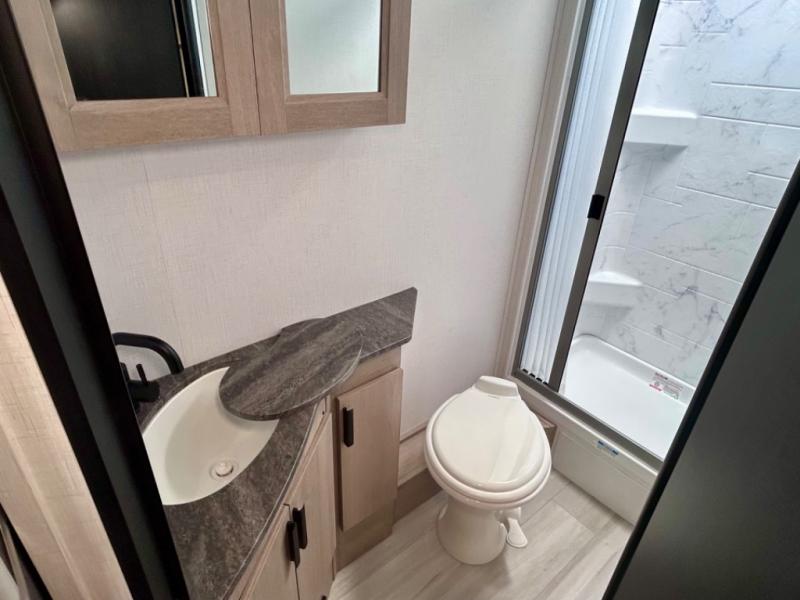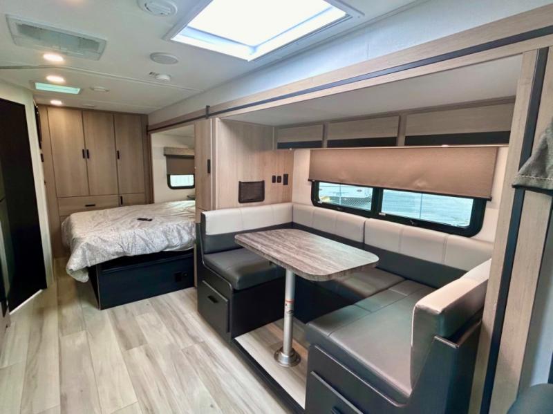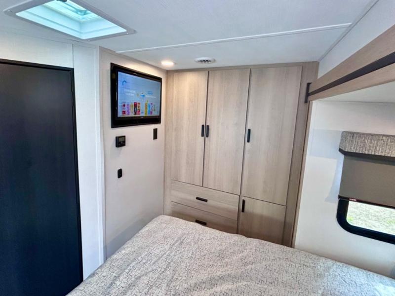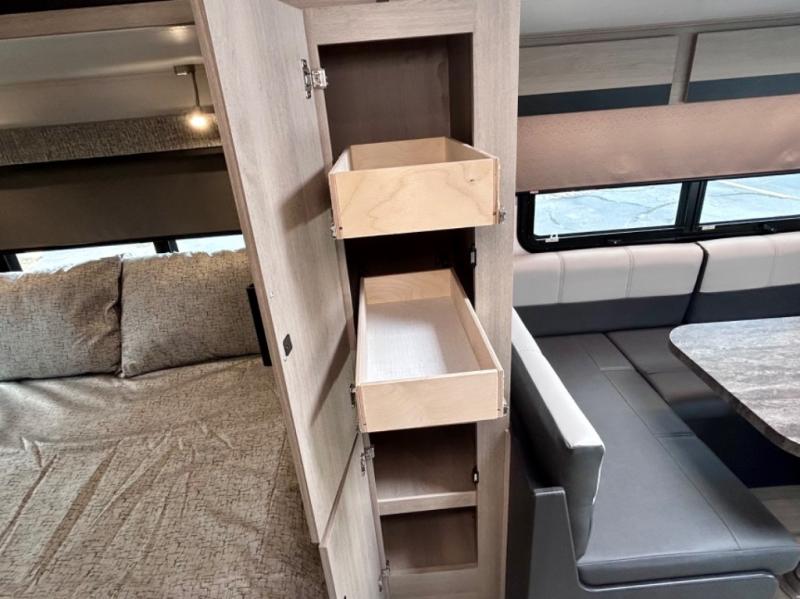 With any Forester MBS Class C diesel motorhome by Forest River, you will have a diesel Mercedes chassis, a 10" touch screen with CarPlay/Android radio with USB and Bluetooth, plus a backup camera with side view cameras and 3-way monitor to easily maneuver the road. The Gateway 4G WiFi capability and Winegard Air 360+ digital antenna will help keep you connected, and the optional 190W charging system gives you the option to go off-grid if you choose. The spacious living area and well-appointed décor will make you feel at home, plus the bathroom's motion sensor light and oxygen-infused shower head with a flexible extension will provide the comfort and style you are wanting in your next RV!